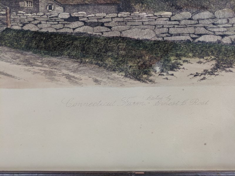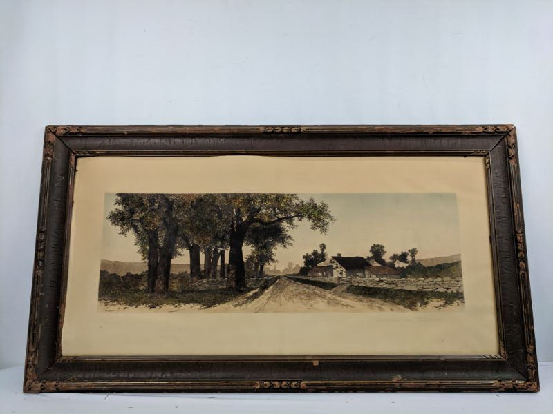 Vintage Frame W/ Houses & Trees 43.5" x 23.75"