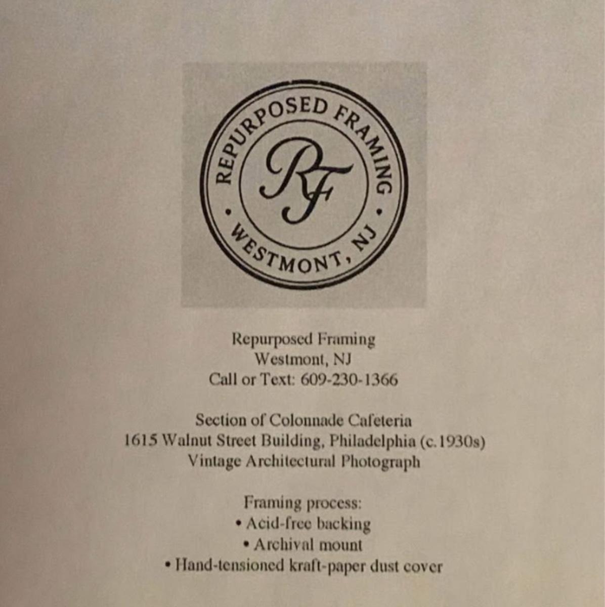 Vintage Framed Architectural Photograph – Colonnade Cafeteria, Philadelphia (c.1930s) 18” x22”