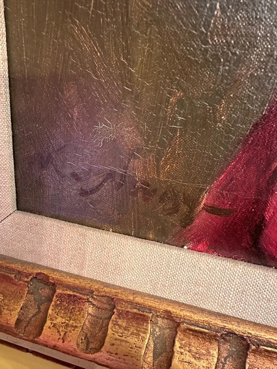 VINTAGE FRAMED ART FEMALE SIGNED 24X28