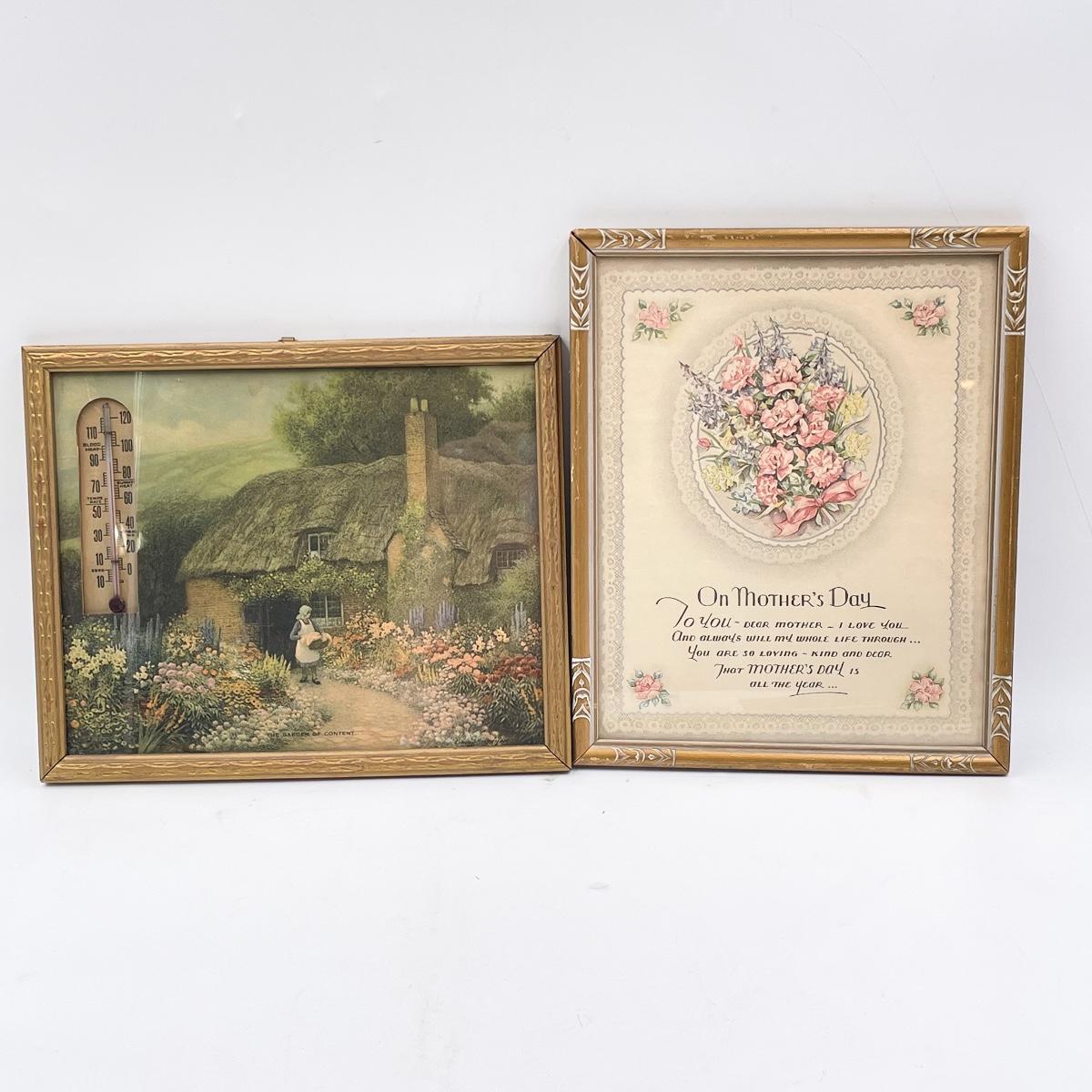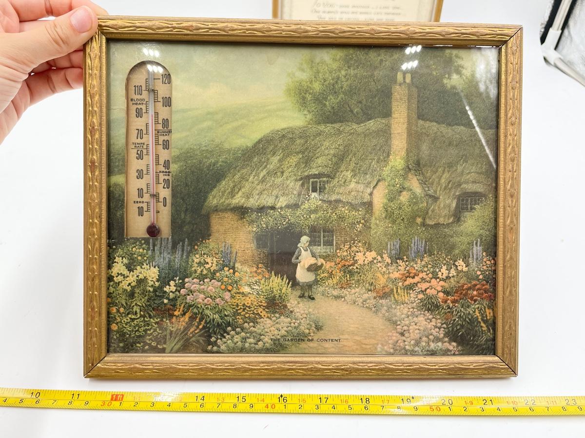 VINTAGE FRAMED ART - ONE WITH THERMOMETER