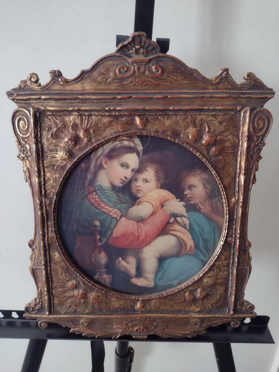 Vintage Framed Art Plaque 'Madonna della Seggiola' by Raphael Choice I