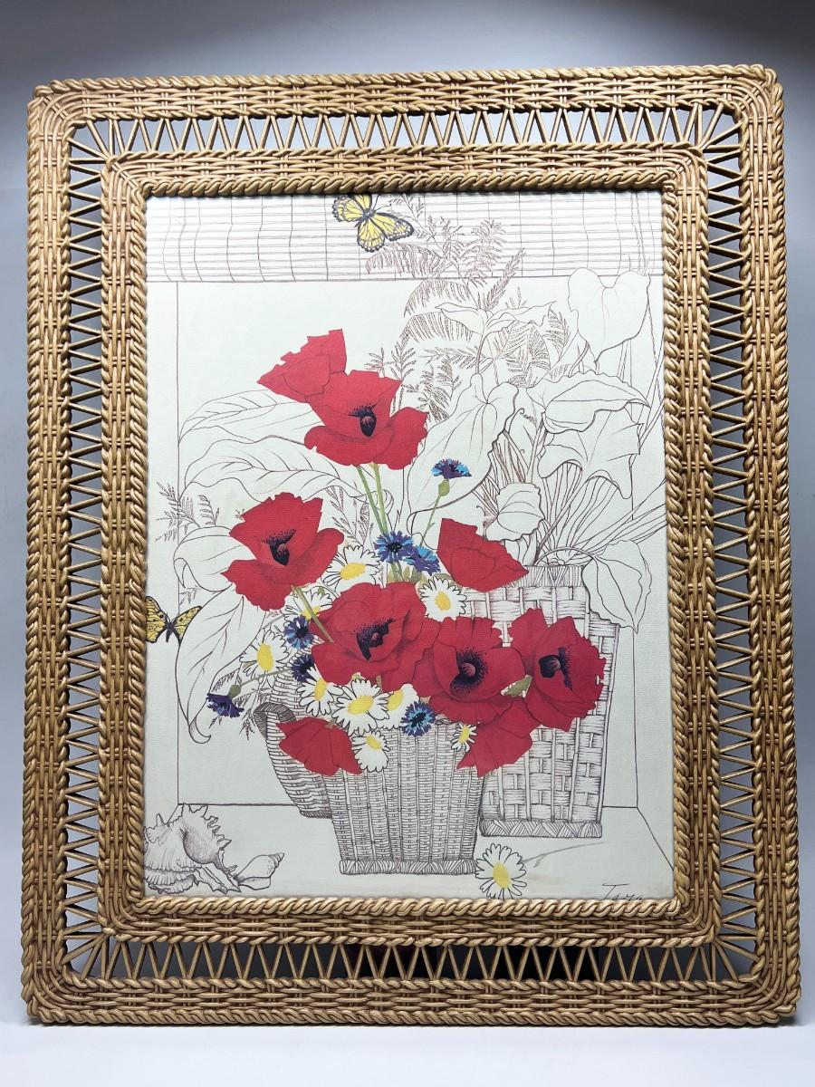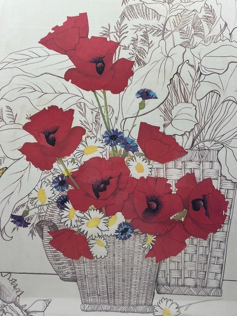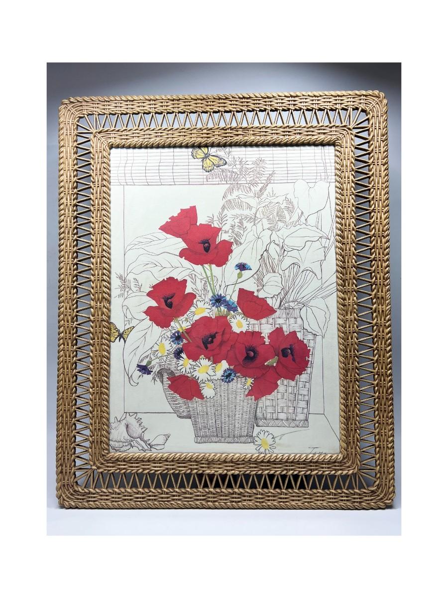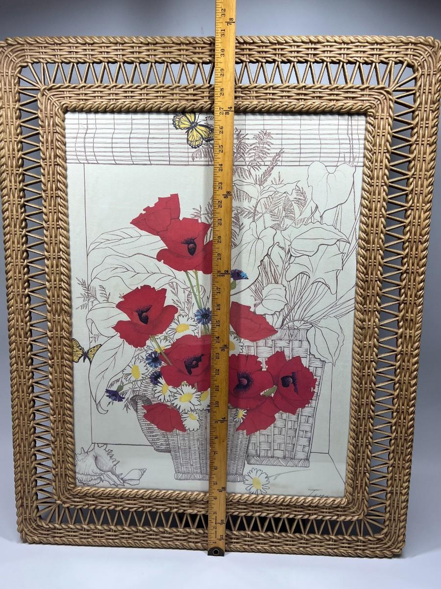 Vintage Framed Artwork Lithograph Floral Poppies Still Life by William Tara