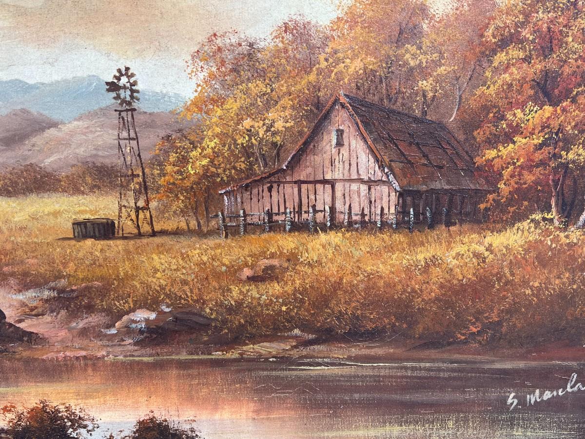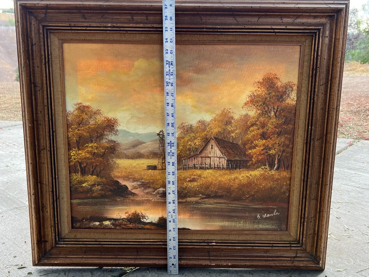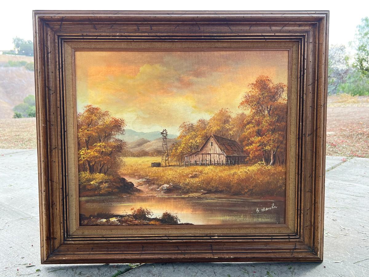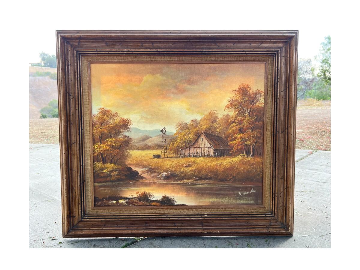 Vintage Framed Autumn Rustic Barn Oil Painting - IN LA HABRA HEIGHTS