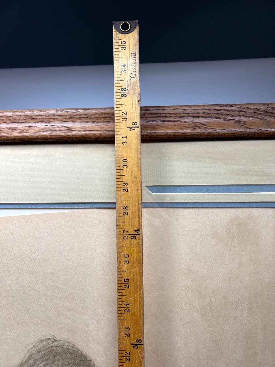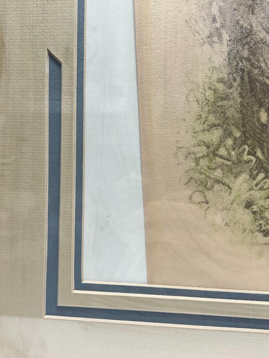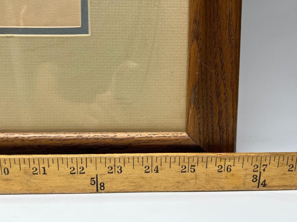 The print has shifted in the frame and there is some vintage wear to the frame, but there is no significant damage and is in overall good displayable condition. Check pictures for more details and for sizing.
