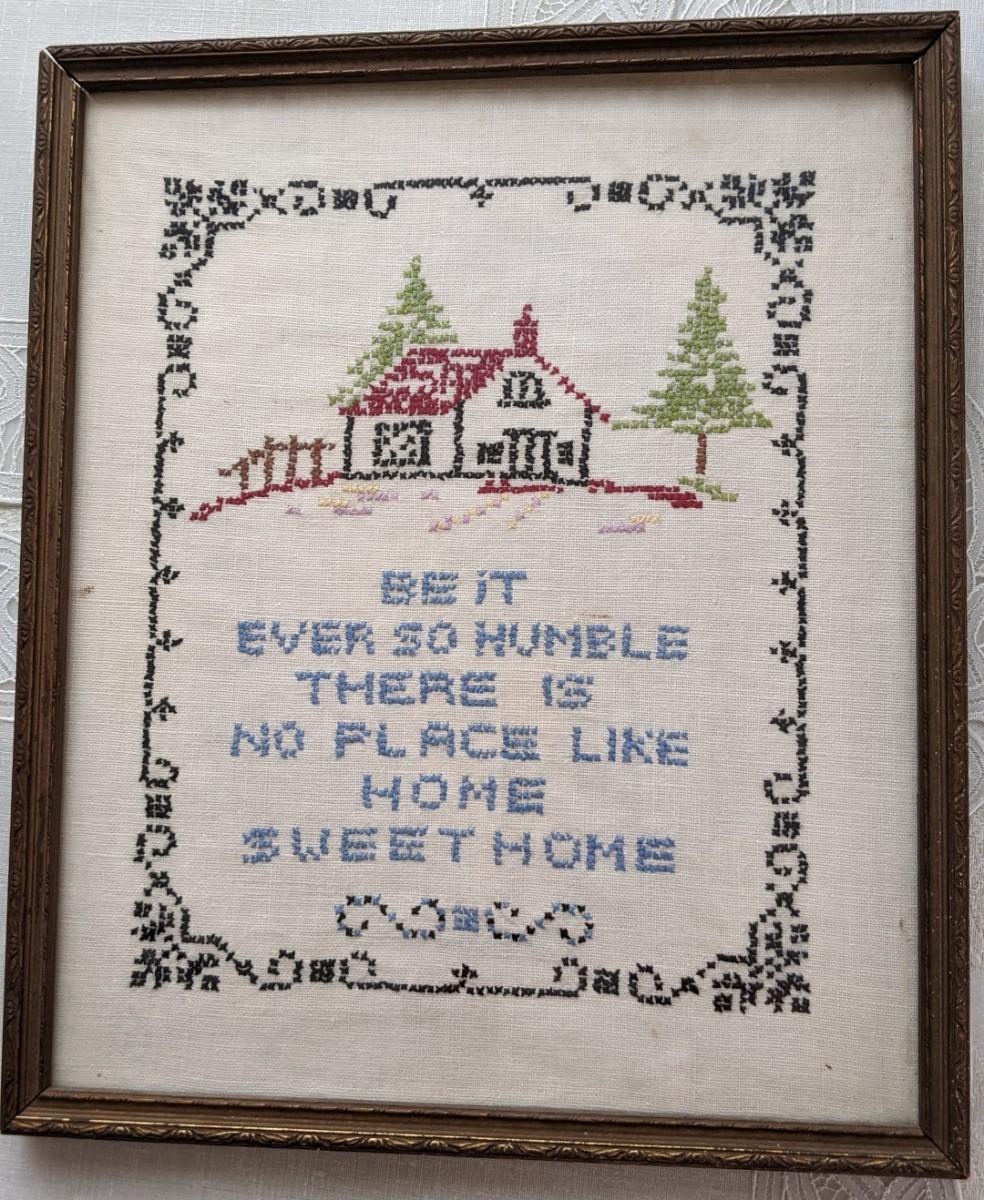 Vintage Framed cross stitch No Place Like Home
