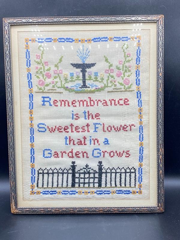 Vintage Framed Cross Stitched Tea Towel Art