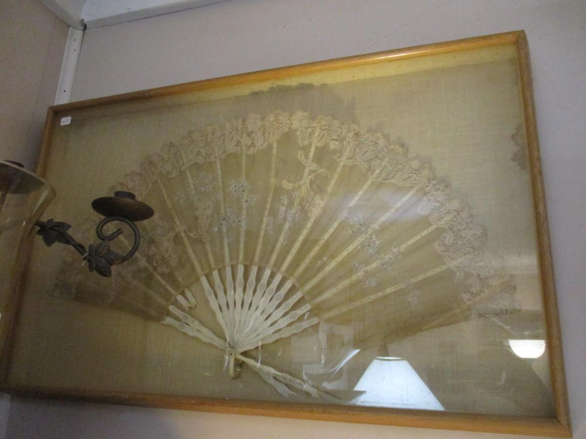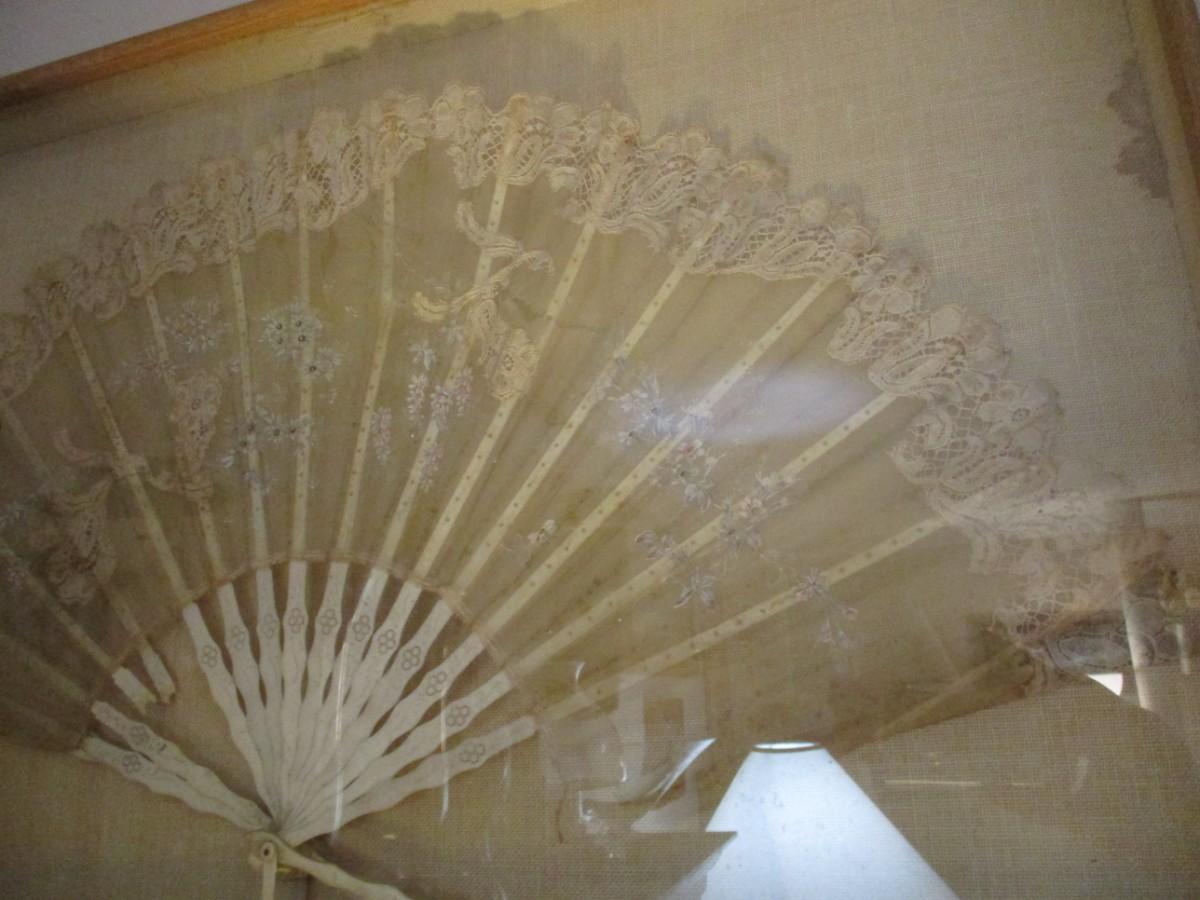 Vintage Framed Bone and Silk Hand Fan. Has some damage as shown