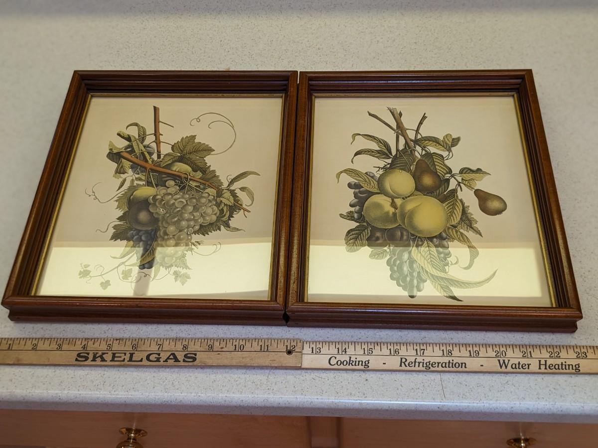 Vintage Framed Fruit Prints by J L Prevost Set of 2 Mid Century Modern Retro