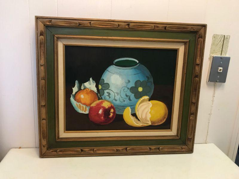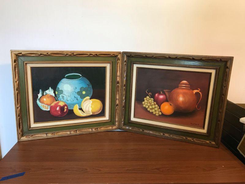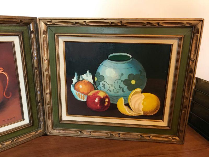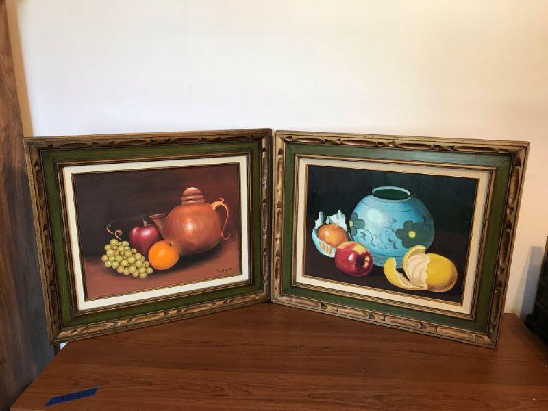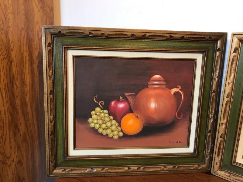 Pair of Vintage Framed Fruit and Vase Paintings (5)
