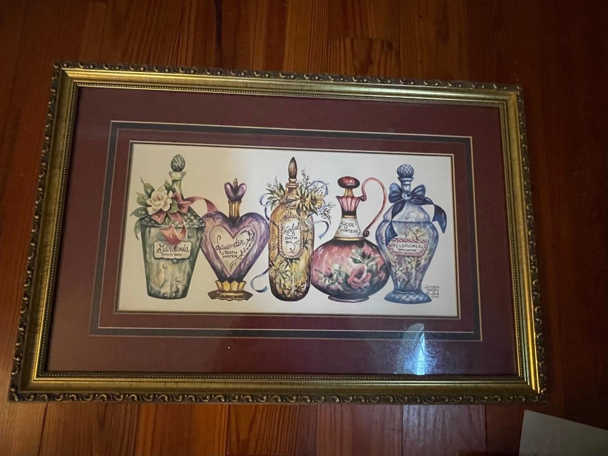 Vintage Framed "Herb Bath" Lithograph Signed by Frankie Buckley Artist