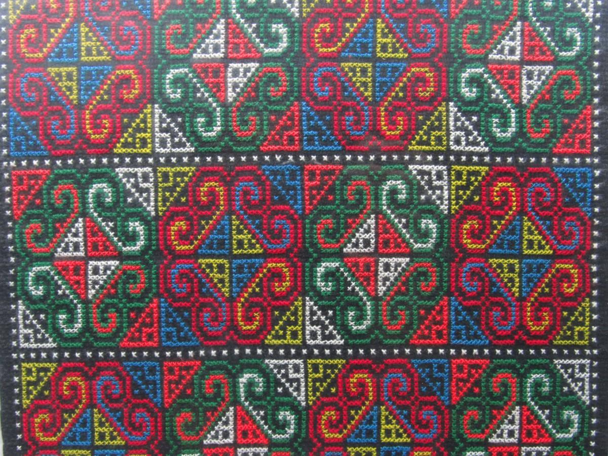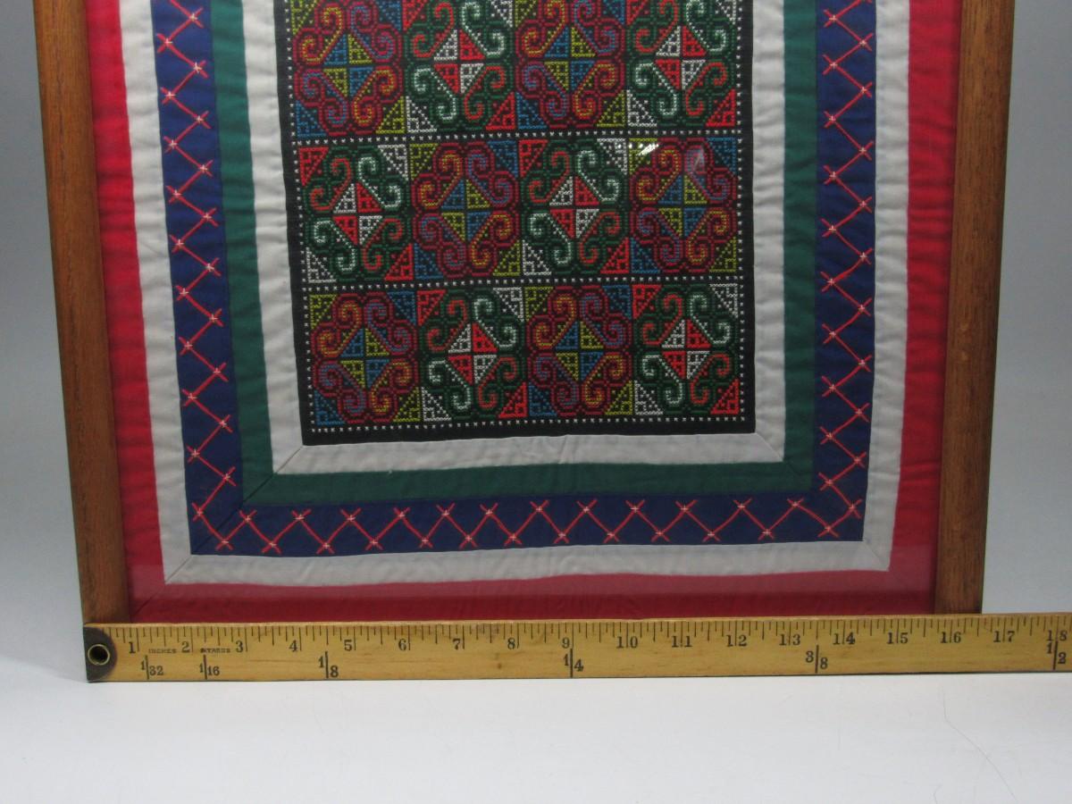 Vintage Framed Hmong Hand Crafted Cross Stitch Material Ethnic Colorful Pattern Art