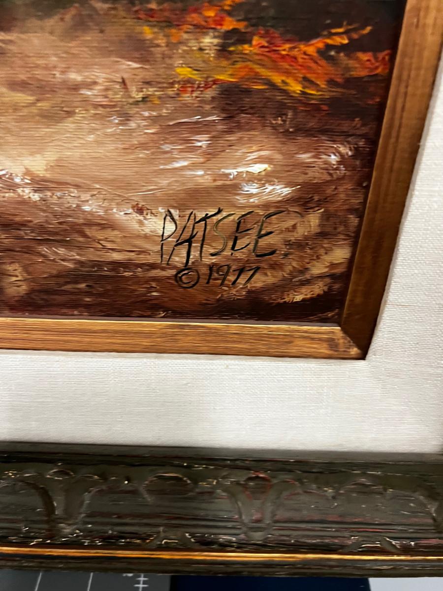 Vintage Framed Landscape Original Oil Painting 1977 by Patsee. Painting is 50" by 40" framed. If shipping is required there will be a $50 boxing fee.