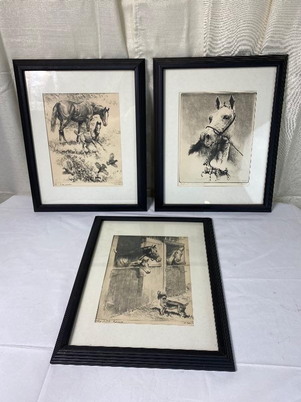 Lot #37 Vintage Framed Matted R. H. Palenske Pencil Horse Prints