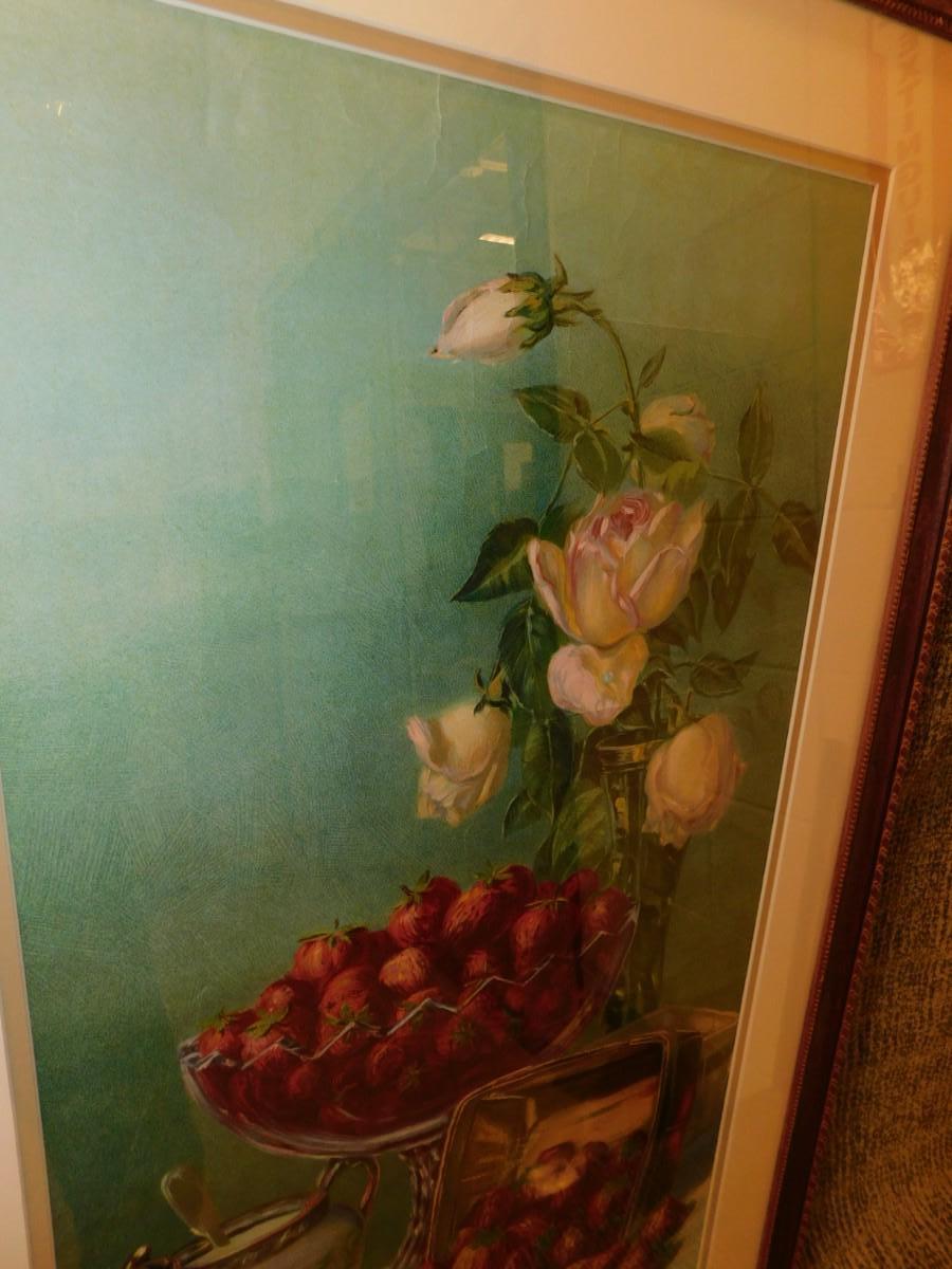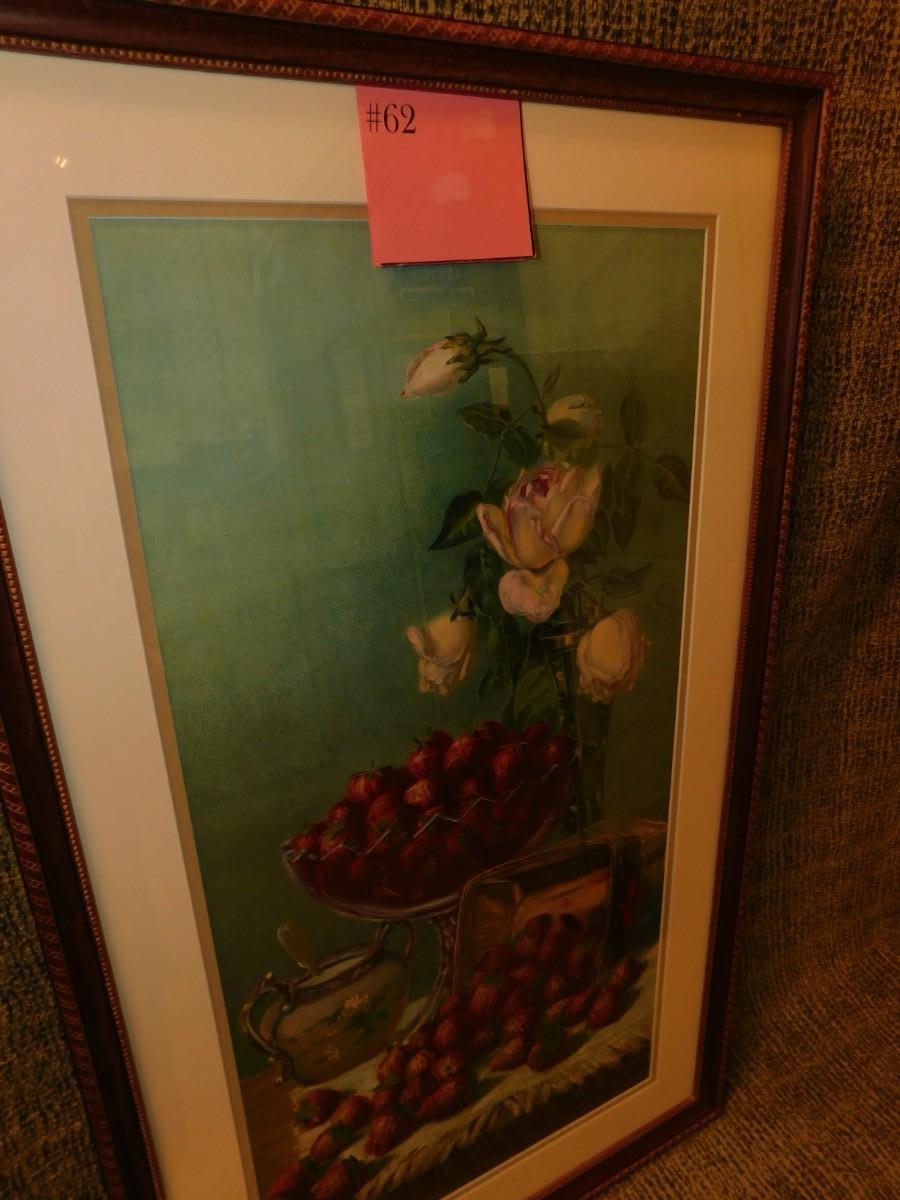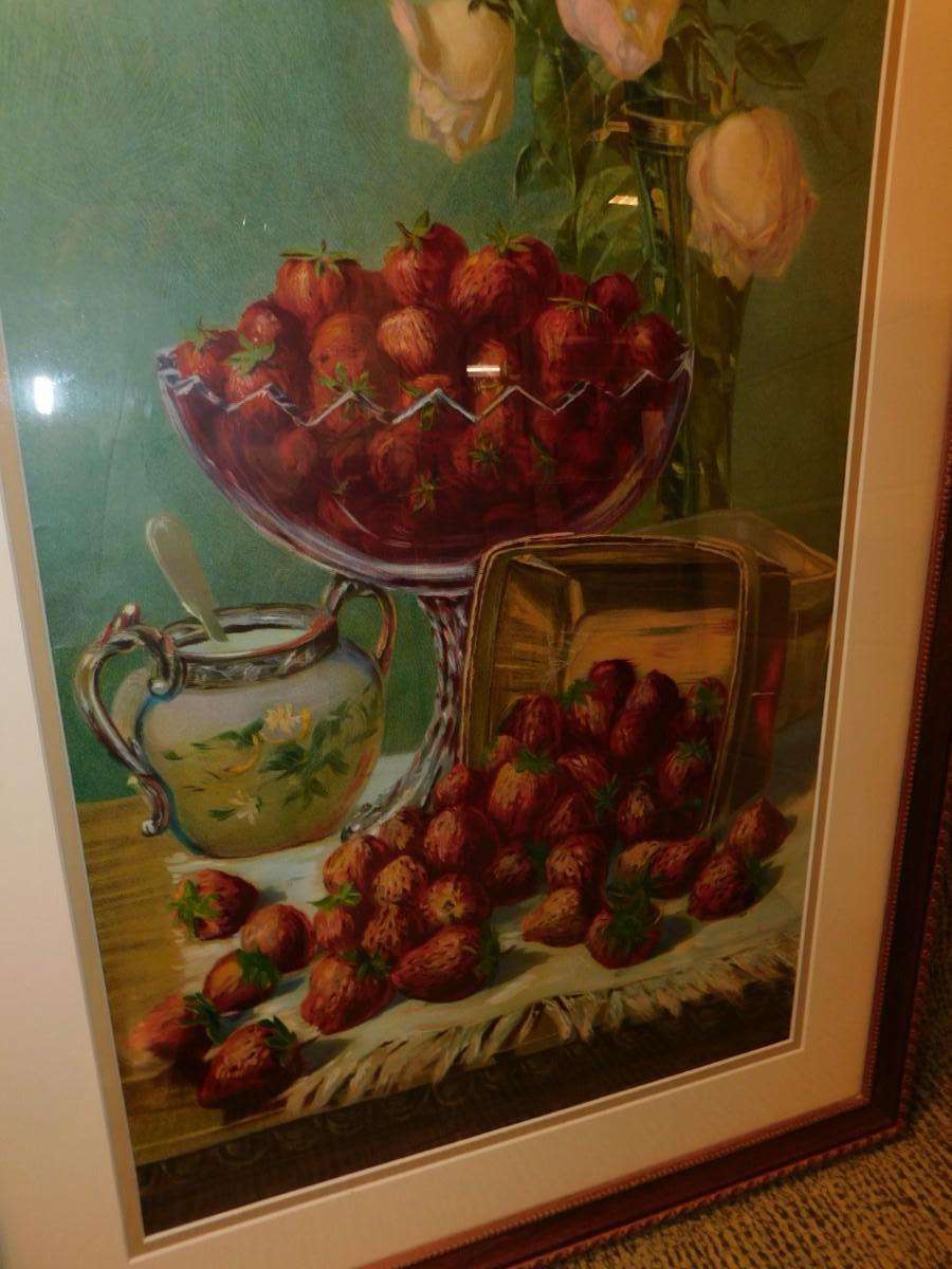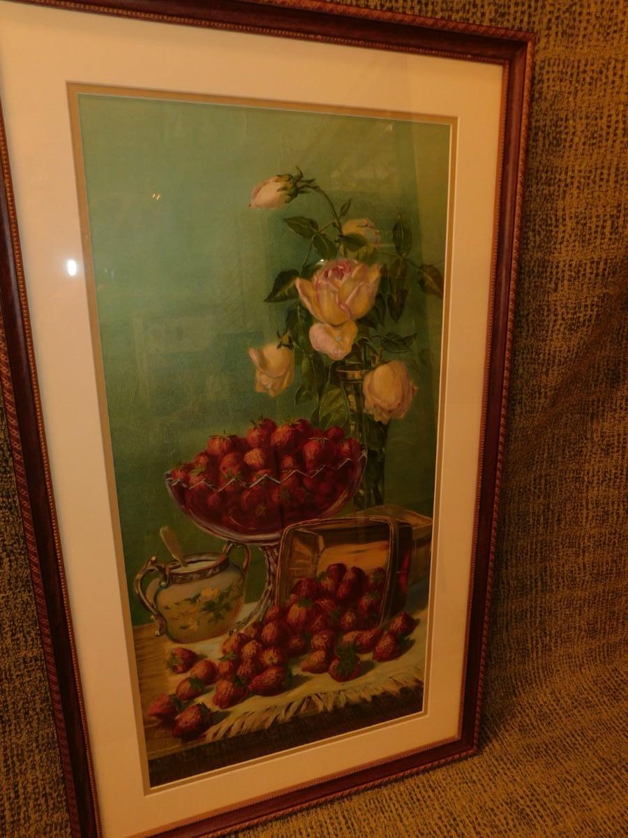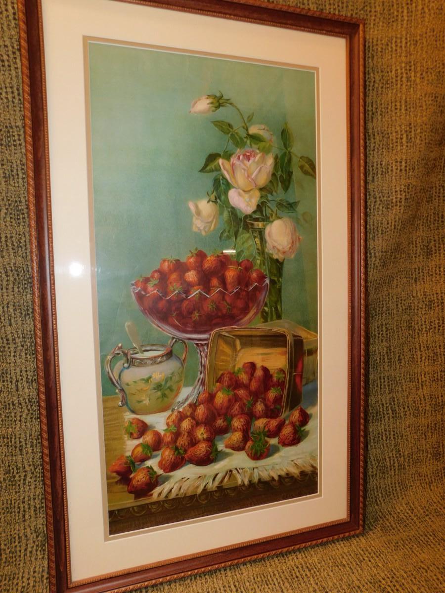 Vintage Framed & Matted Strawberries Print 32”x19”