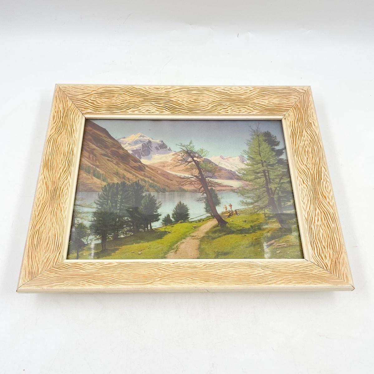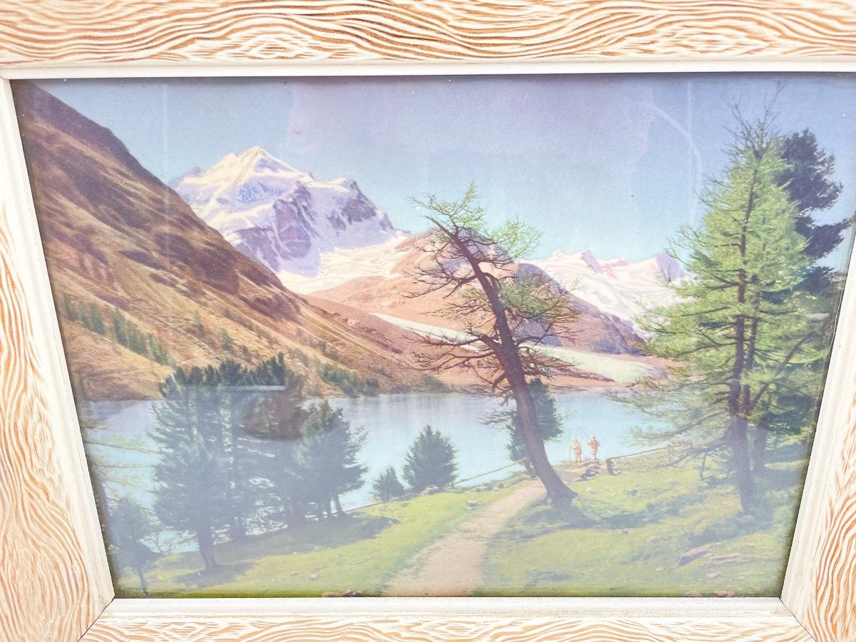 VINTAGE FRAMED MOUNTAIN FISHING PRINT - 12” x 15”