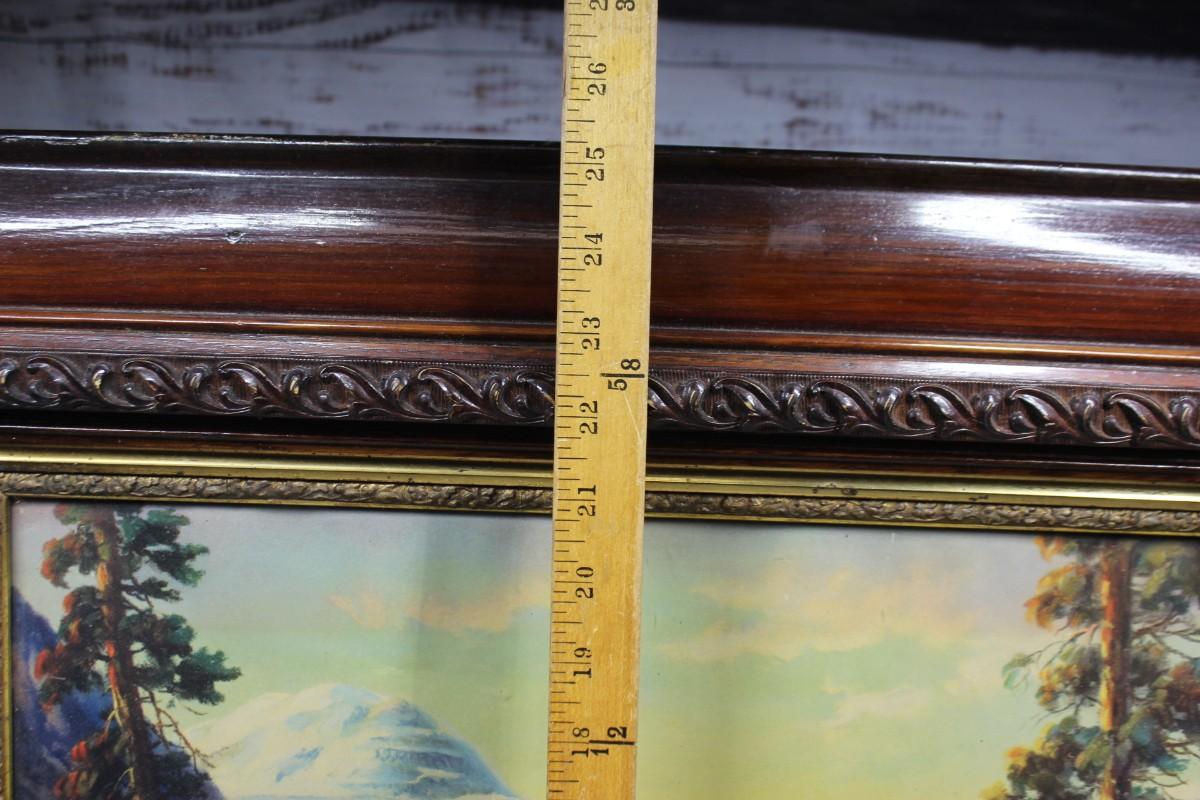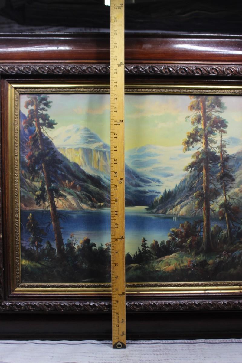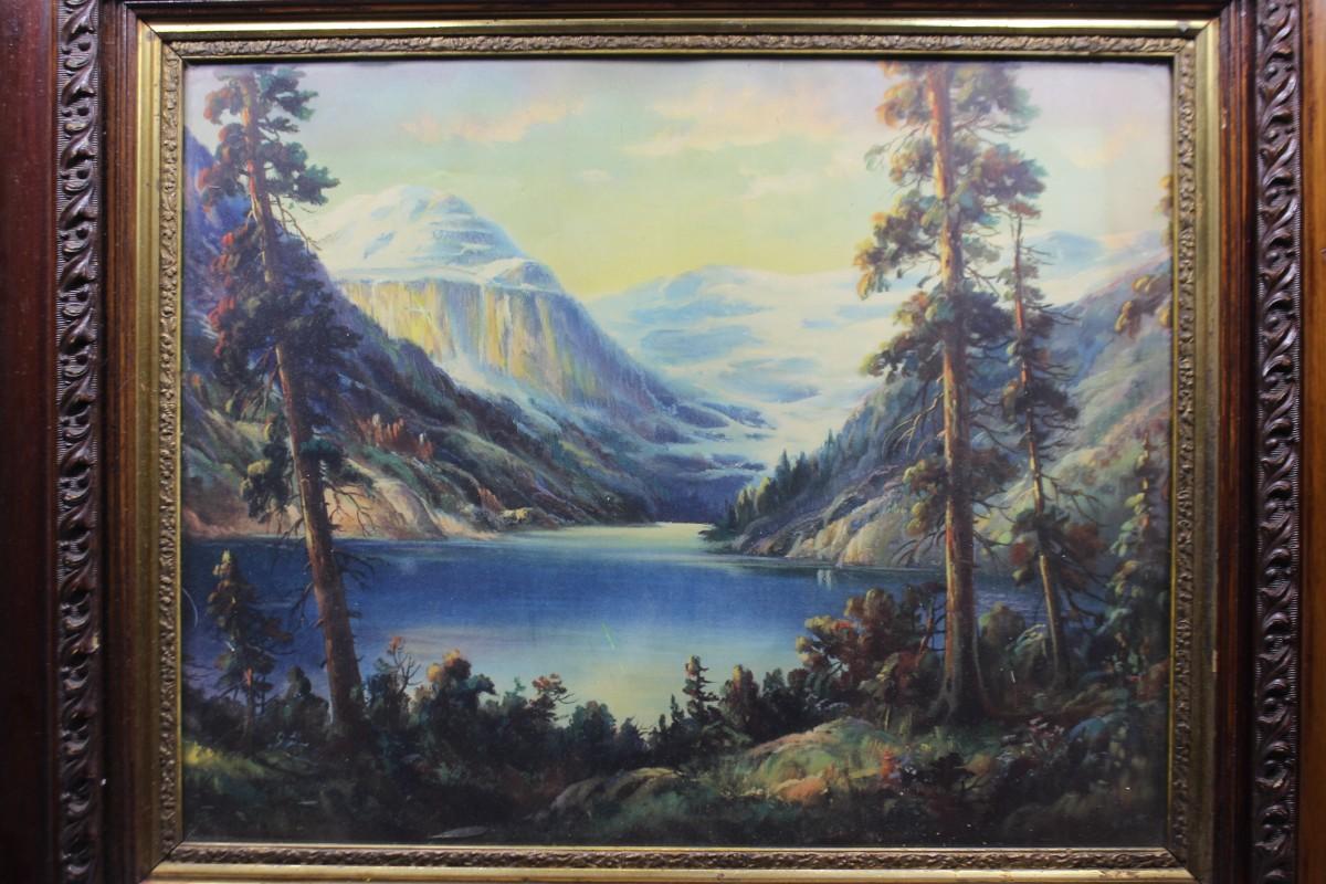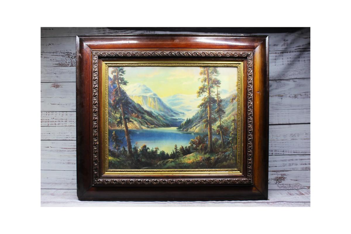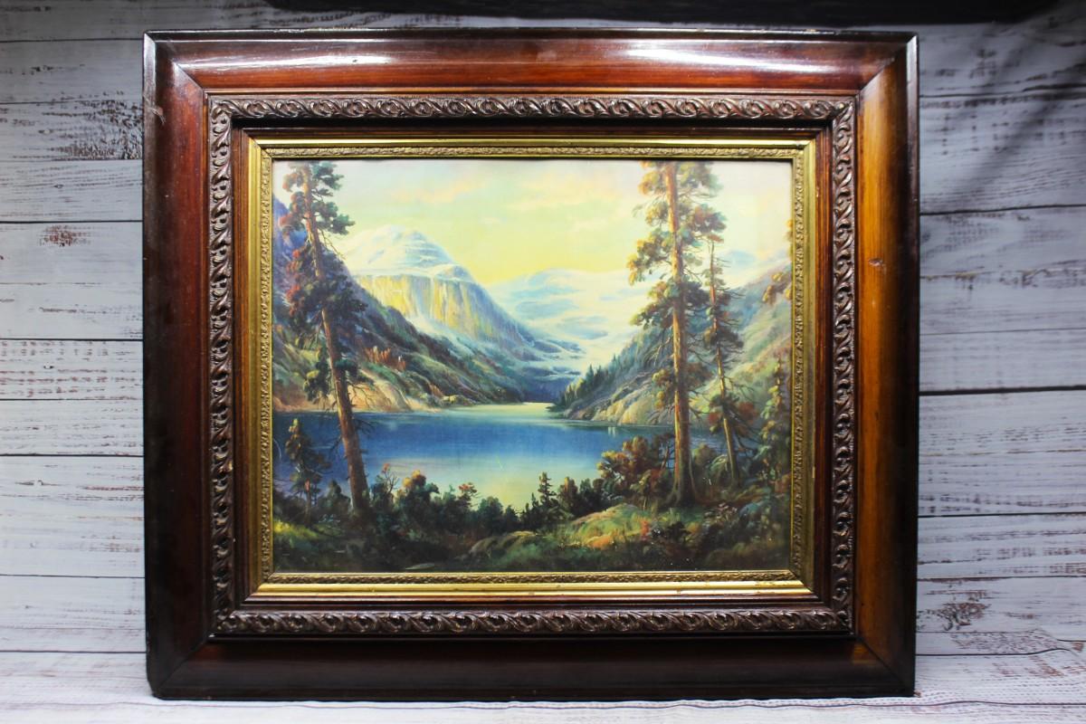 Vintage Framed Oil Painting of Cold Mountain Lake Landscape
