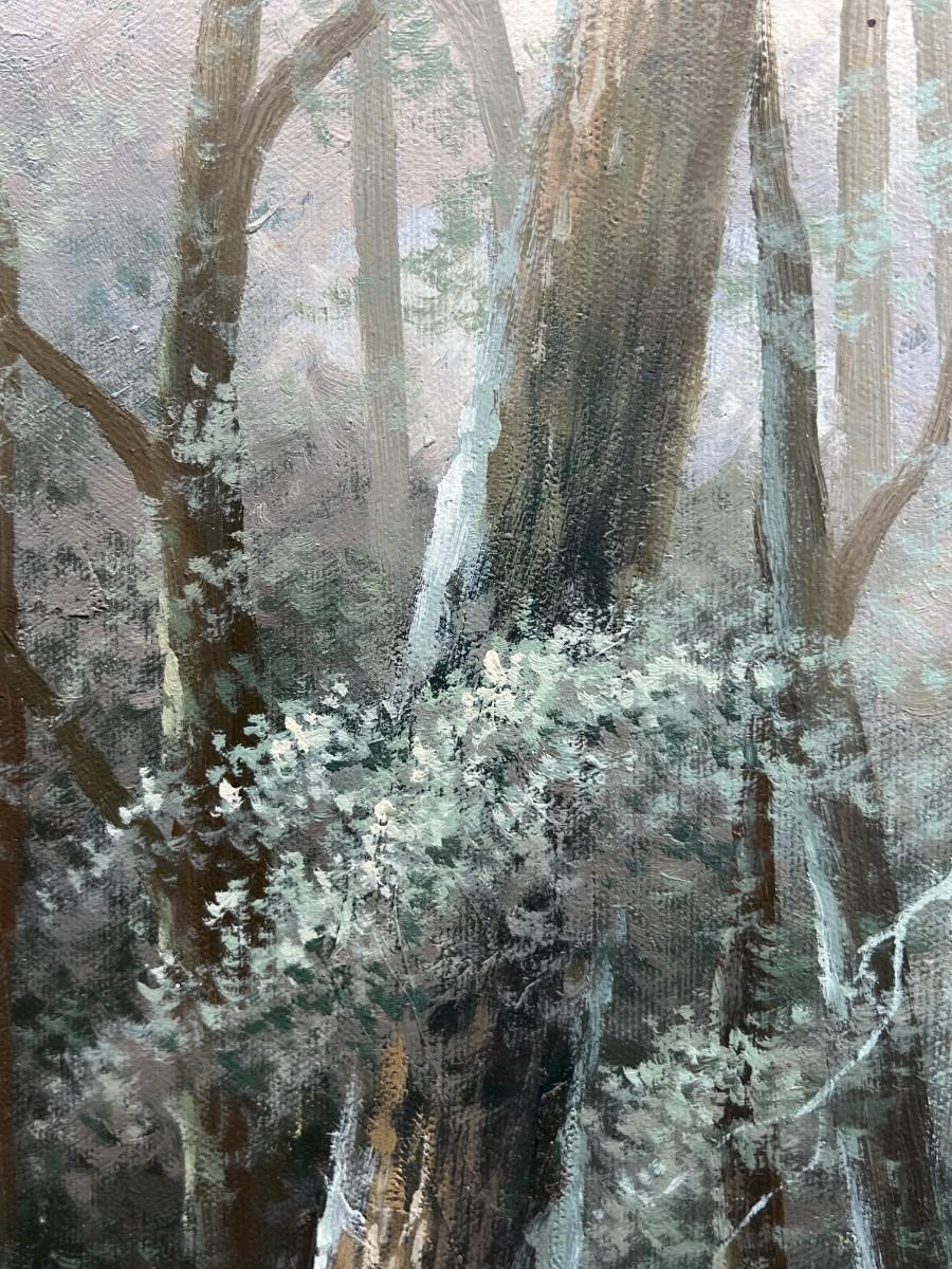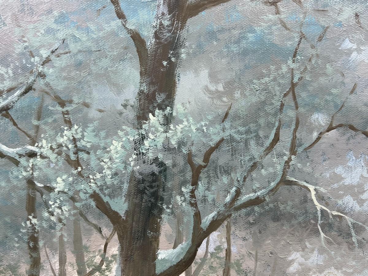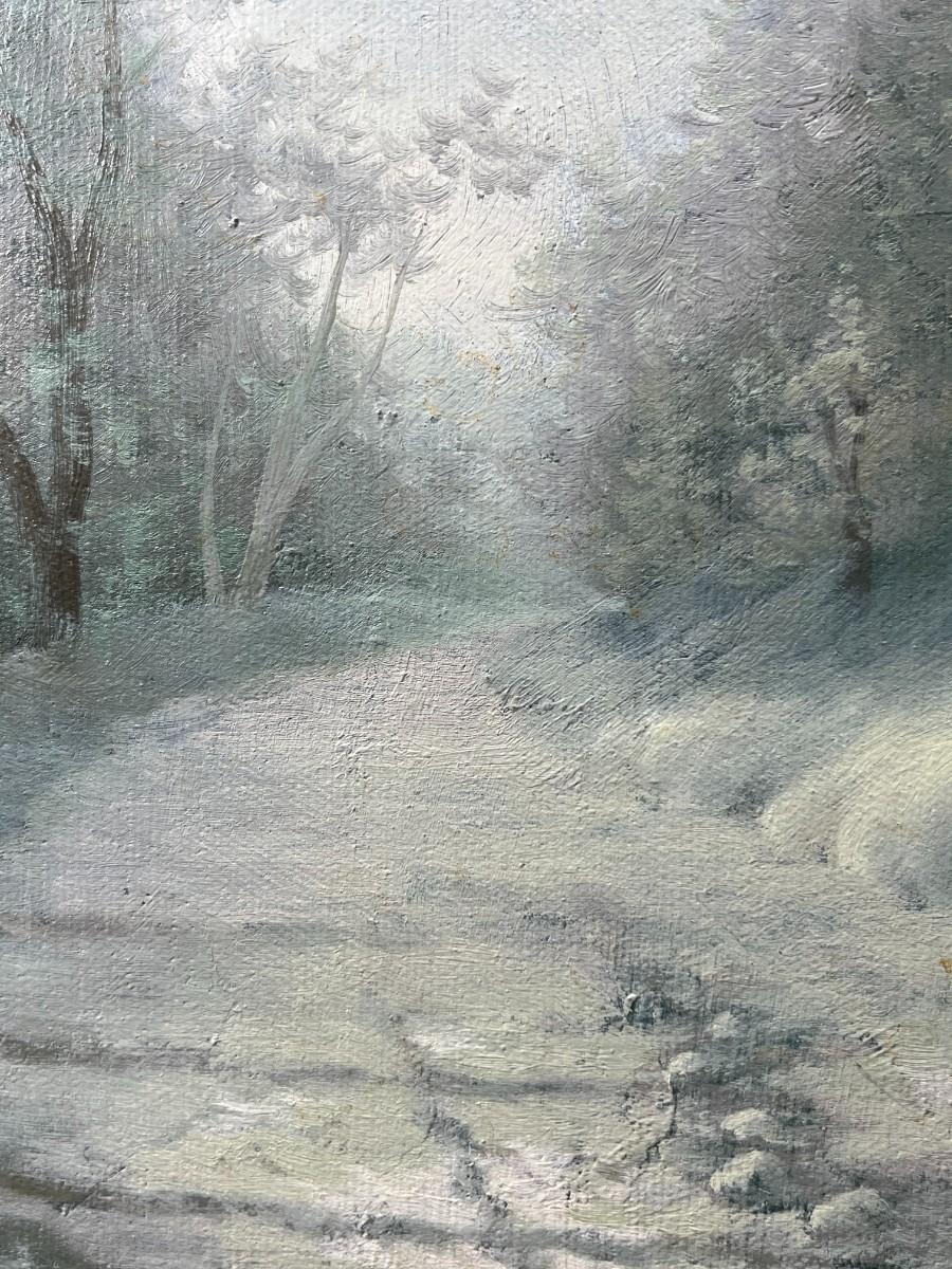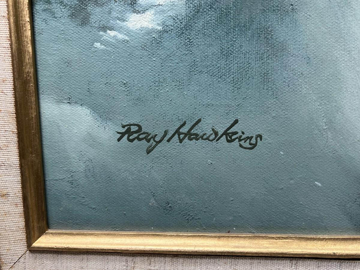 Vintage Framed Original Oil Painting Desolate Winter Snow Forest Artist Ray Hawkins