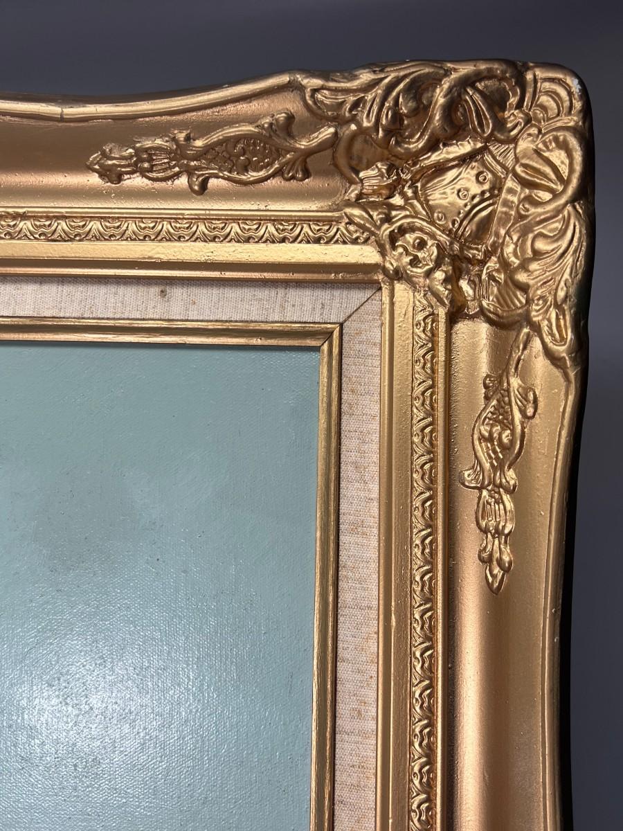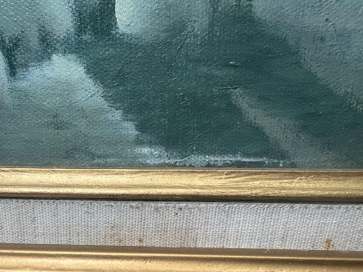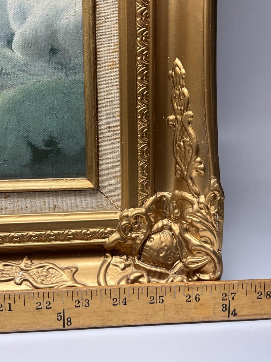 There is no significant damage to the frame or the canvas and is in overall good collectible or displayable condition. Check pictures for more details and for sizing.