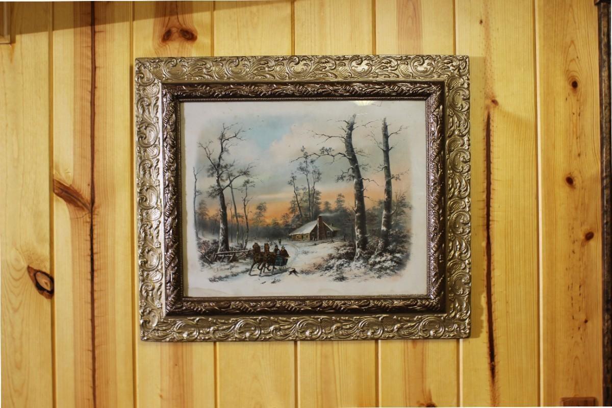 Vintage Framed Pastel Print of a Winter Sunset in New England by William Chandler