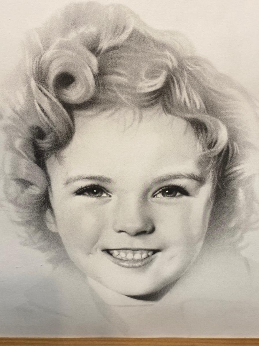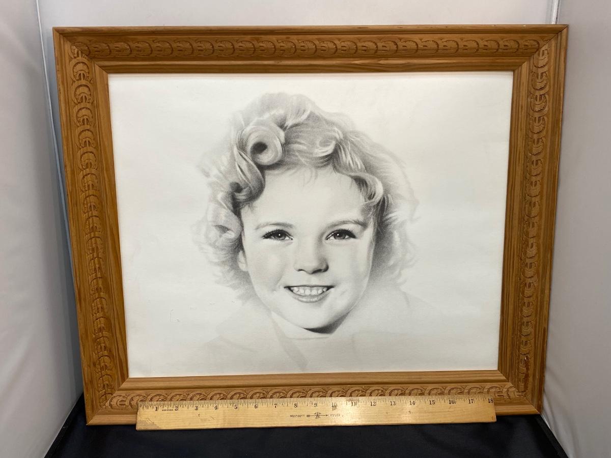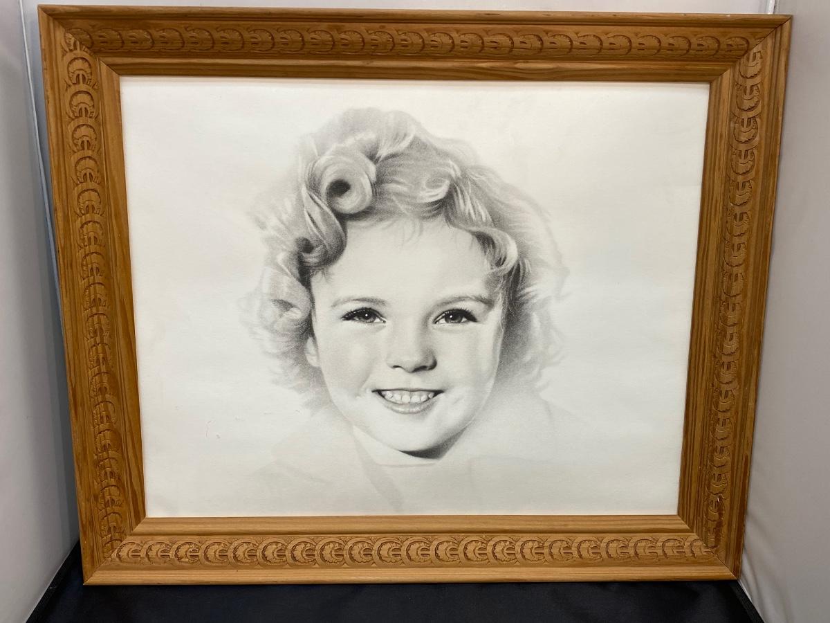 Vintage Framed Pencil Sketch Art of Shirley Temple