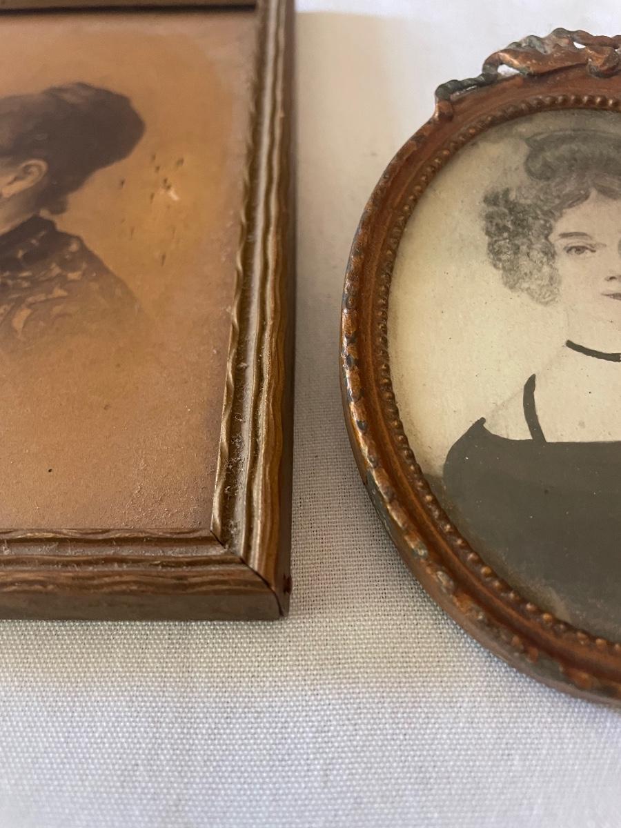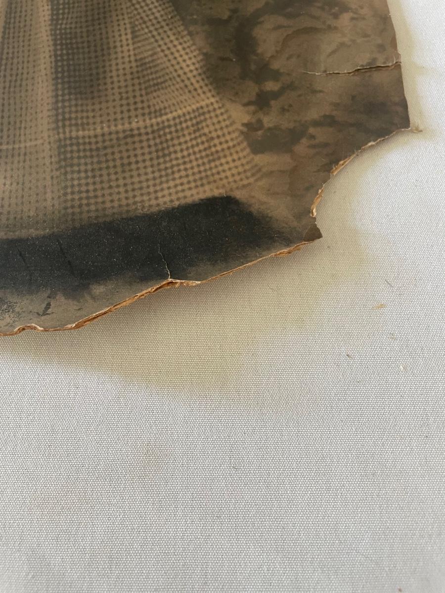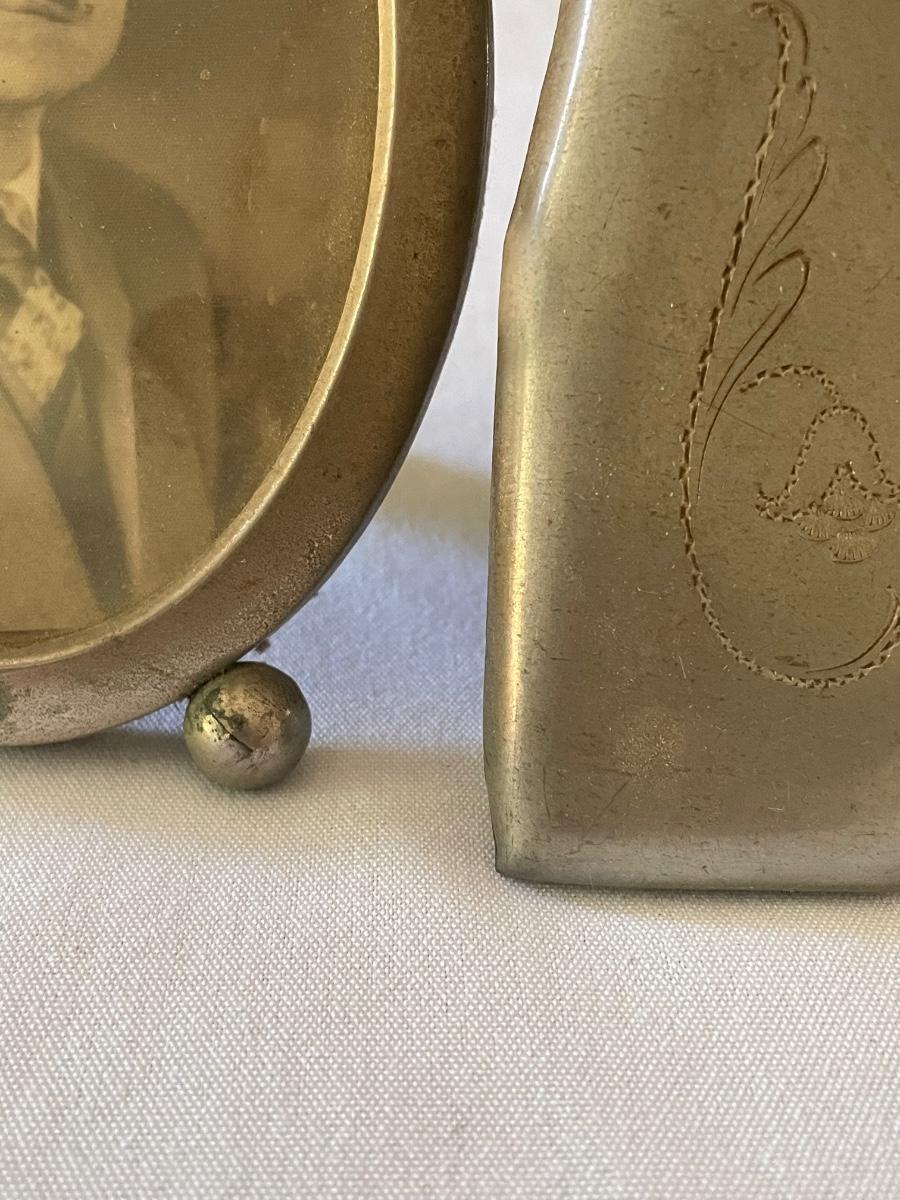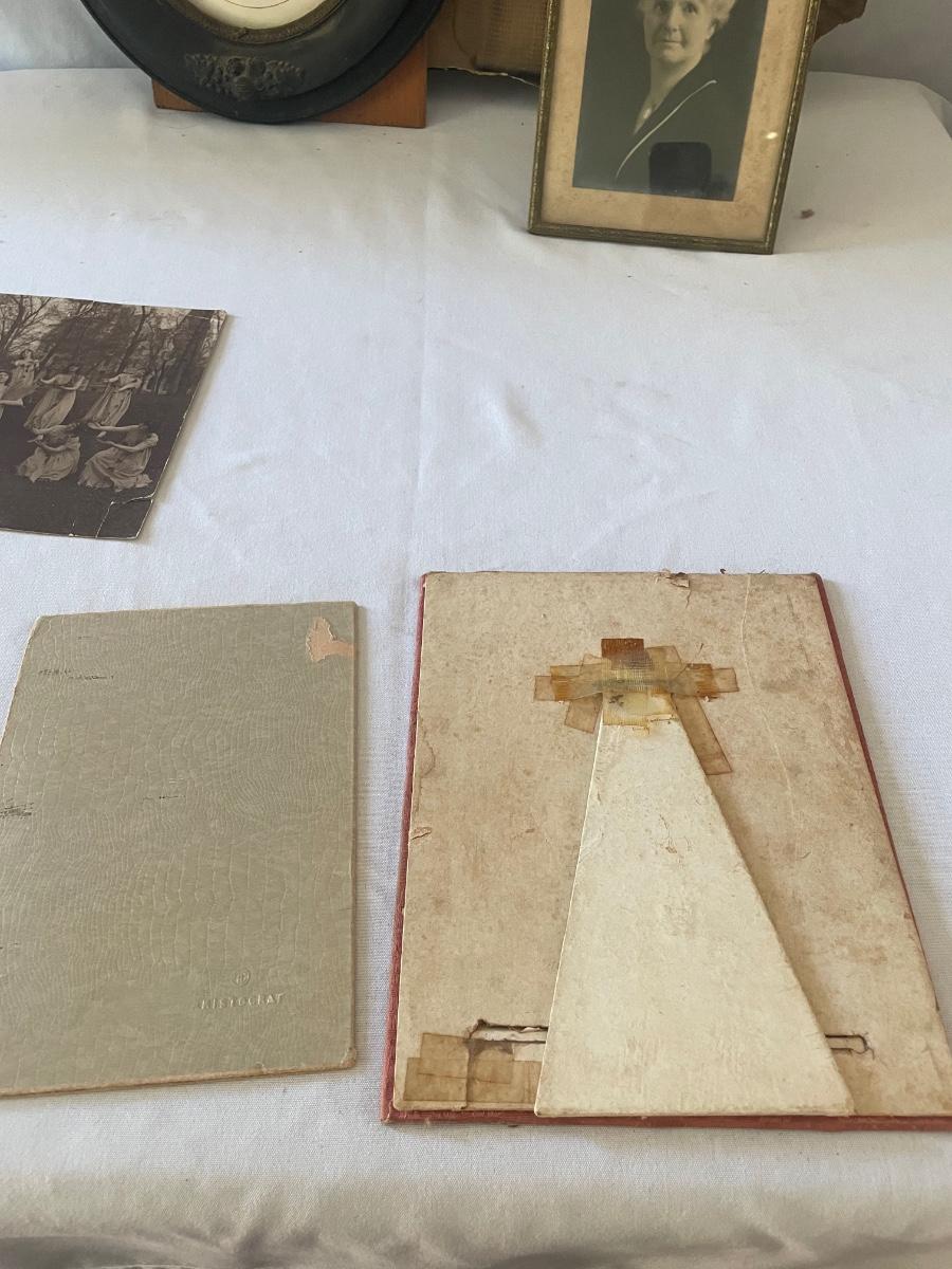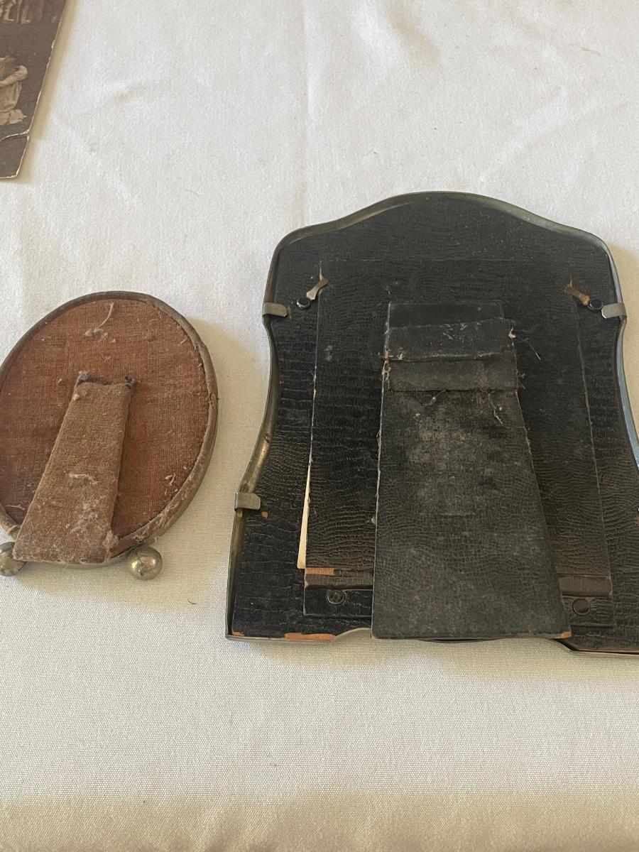 10 vintage photographs, all but the largest one are framed and this photo appears to be the oldest and measures 14.5” x 19” (it does have some water damage and is torn, see images). Metal frames may be silver or pewter but no markings visible.