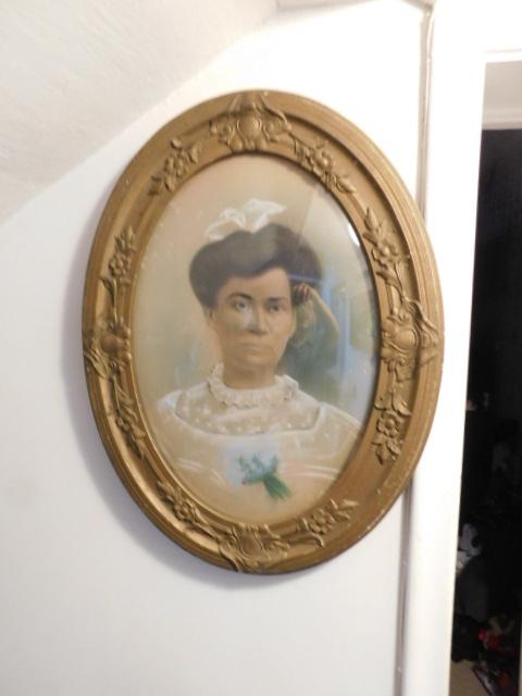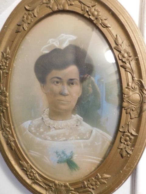 Vintage Framed Portrait Woman in White 17"x25"