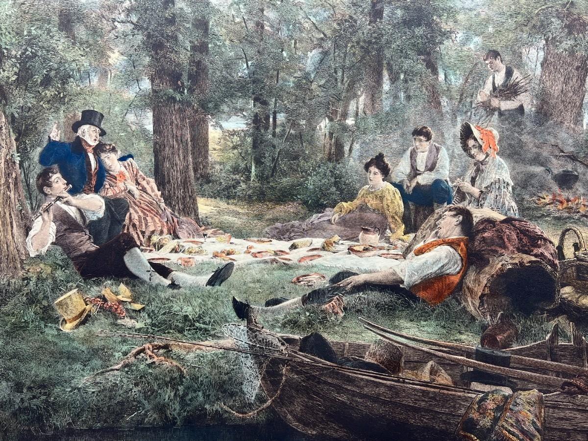 Vintage Framed Print Etch A Summer's Day The Picnic Etched by Walter Dendy Sadler