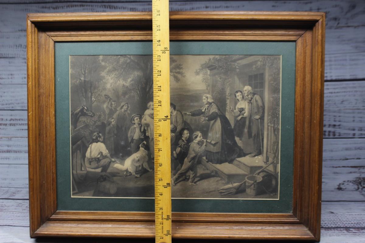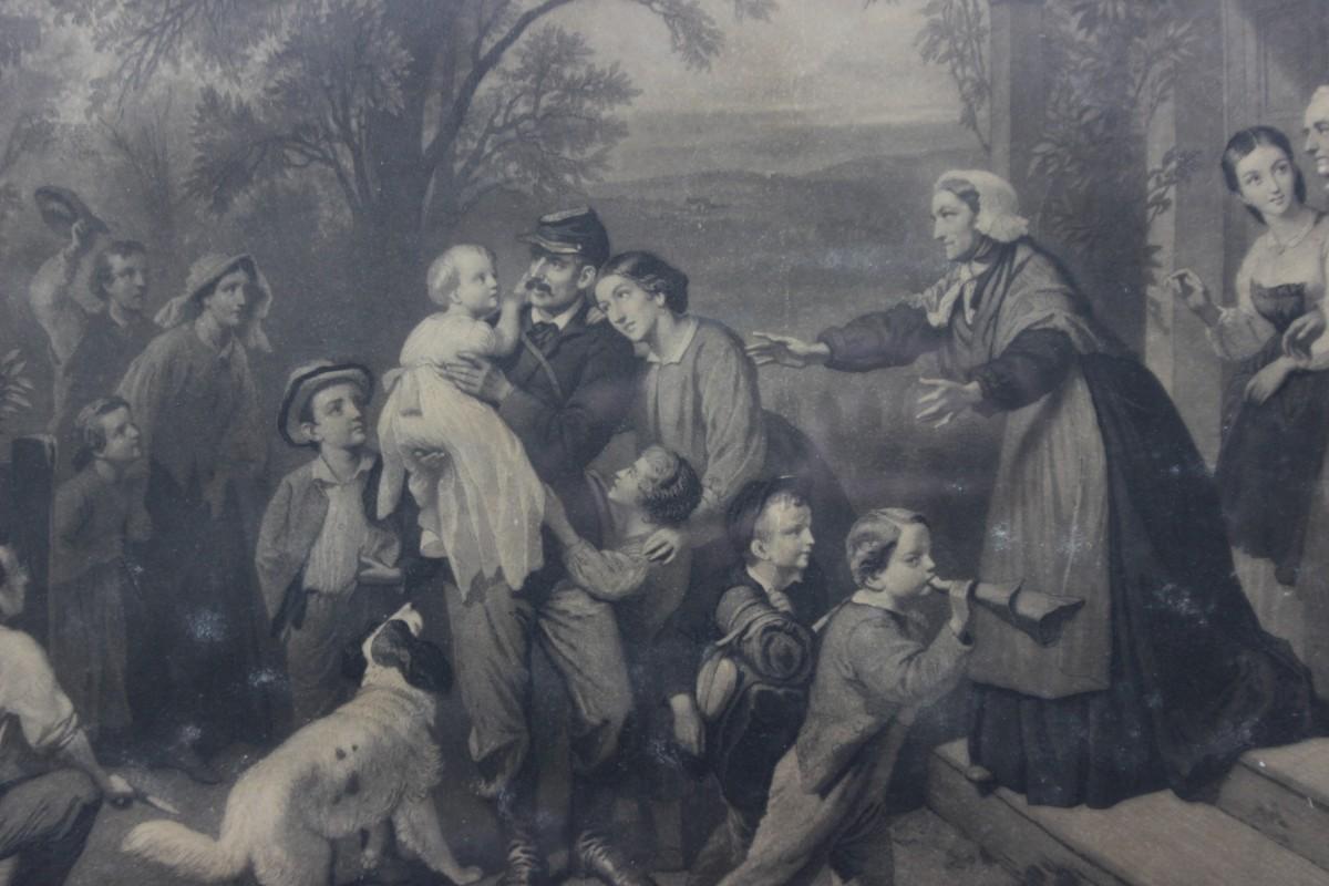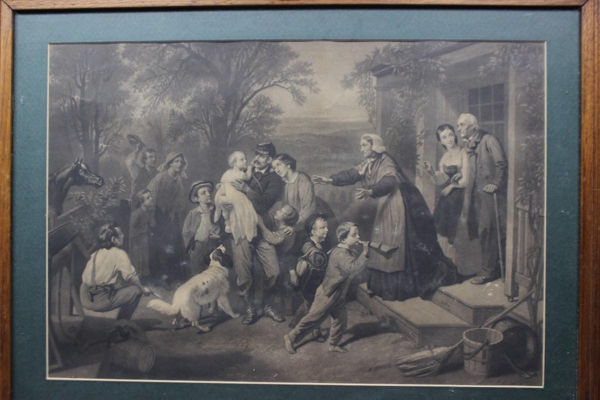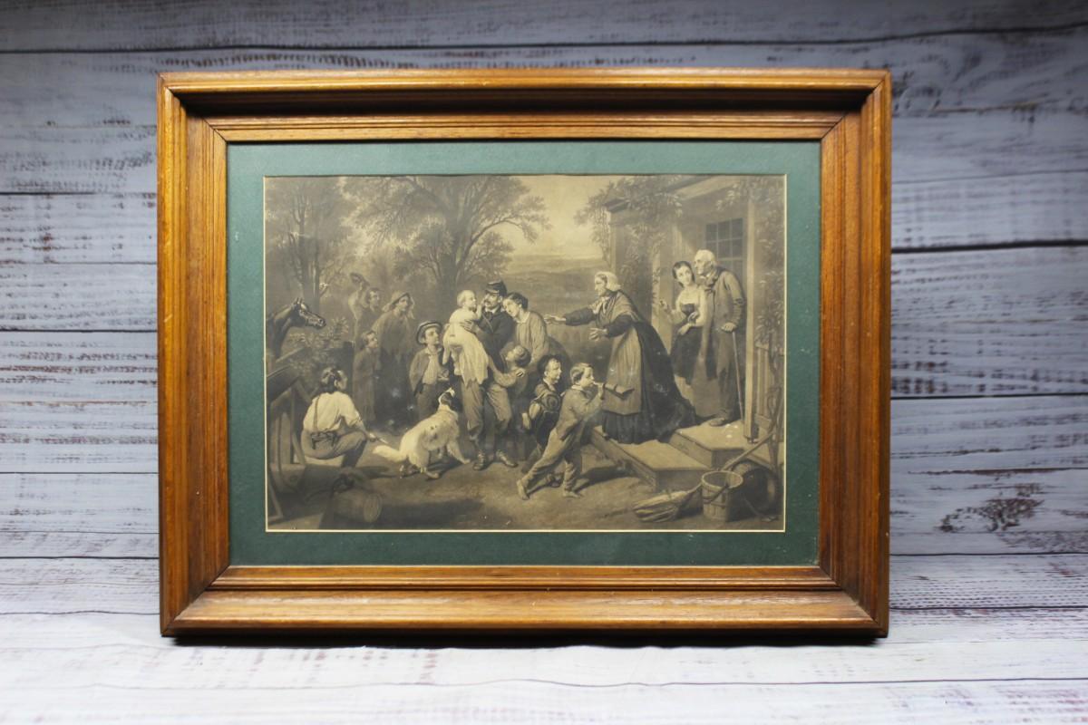 Vintage Framed Print of Home on a Furlough John Sartain, there is no significant damage to the frame or the protective glass and is in good vintage condition. Check pictures for more details and for sizing.
