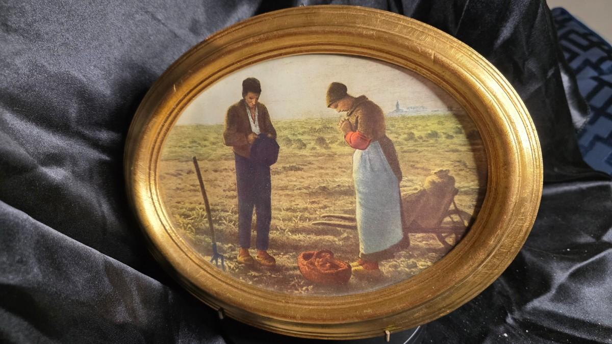 Vintage Framed Print of L'Angélus by Jean-François Millet - Made In Italy - Louvre Museum Edition with Fleur-de-Lis Backing