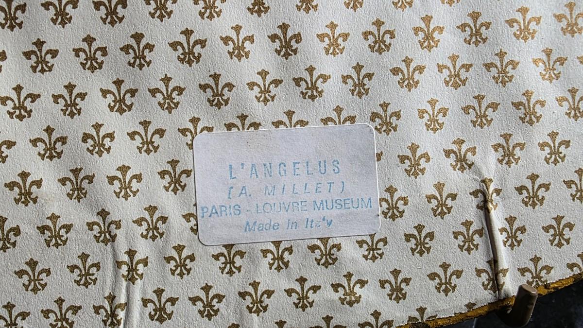 Buy early on our website at: https://treasuresofbako.com/products/vintage-framed-print-of-langelus-by-jean-francois-millet-made-in-italy-louvre-museum-edition-with-fleur-de-lis-backing?utm_source=copyToPasteBoard&utm_medium=product-links&utm_content=web
