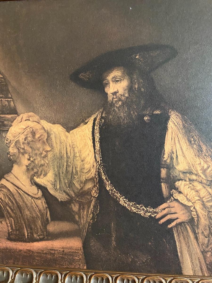 Vintage Framed Rembrandt Print Aristotle Contemplating Bust of Homer