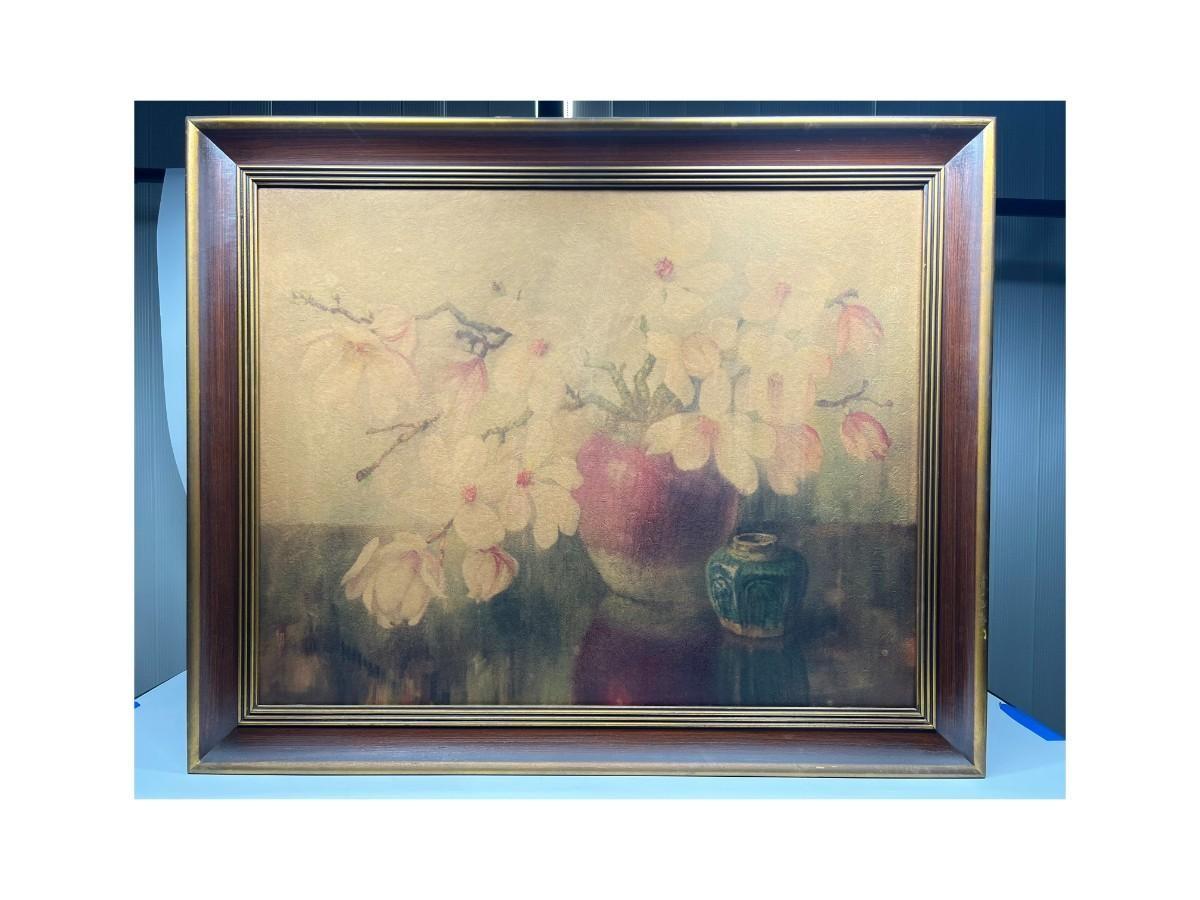 Vintage Framed Reproduction Artwork of Magnolias in Bloom by E. Ottema