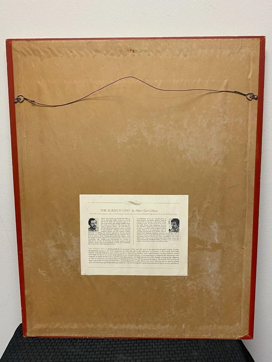 Vintage Framed Screech Owl Audubon Society Engraving Print Albert Earl Gilbert 1976 Signed