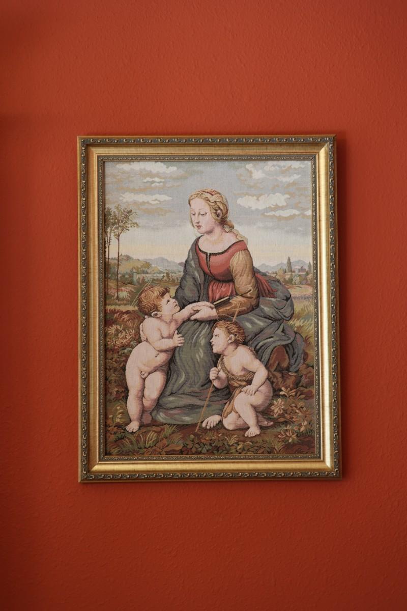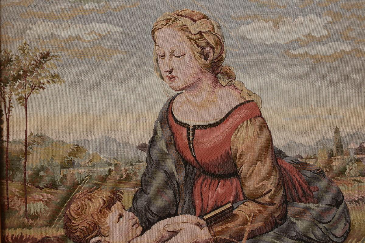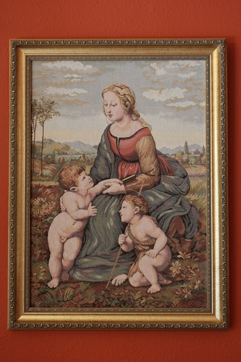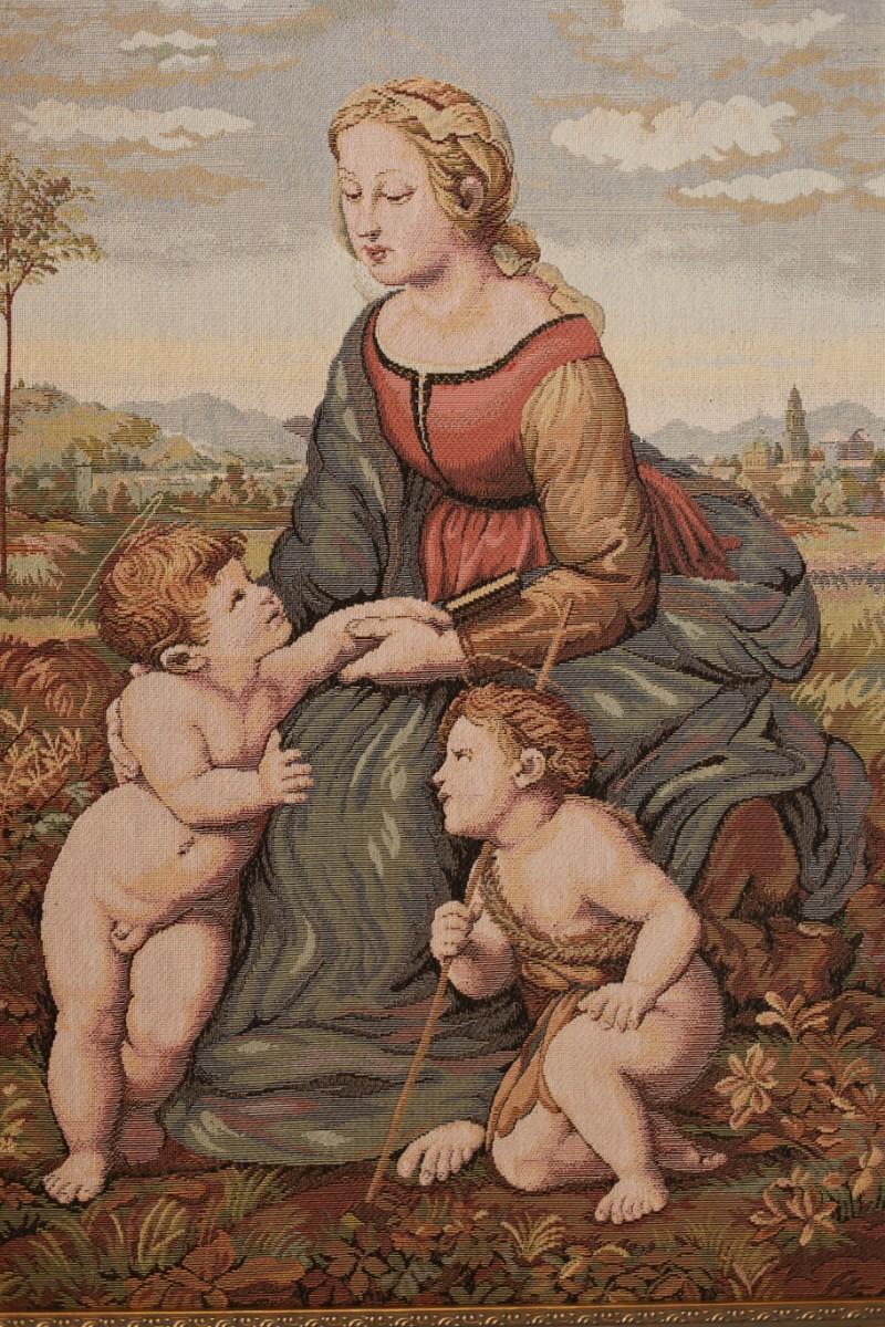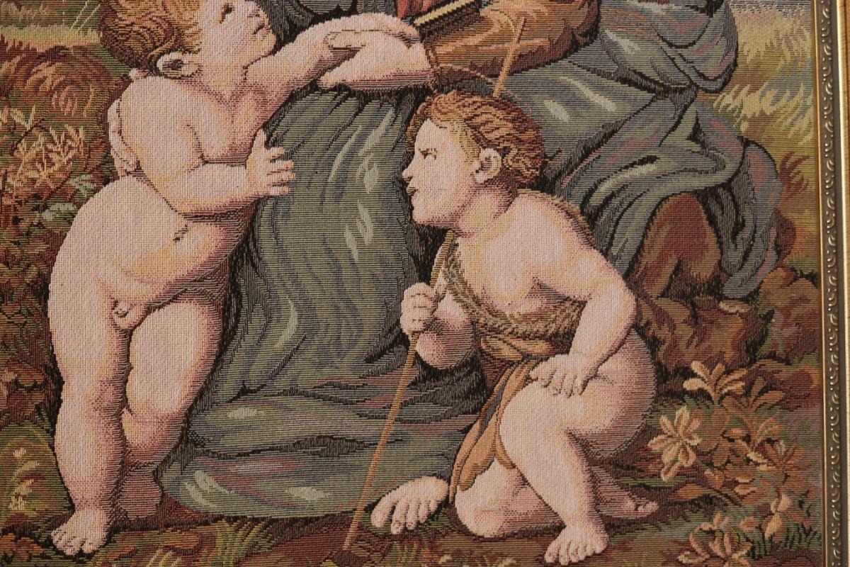 Vintage Framed Tapestry Renaissance Raphael's Madonna and Child & St. John Paul