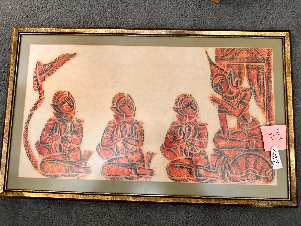 VINTAGE FRAMED TEMPLE RUBBING 36X21