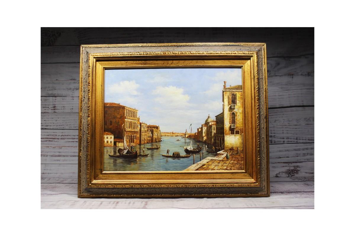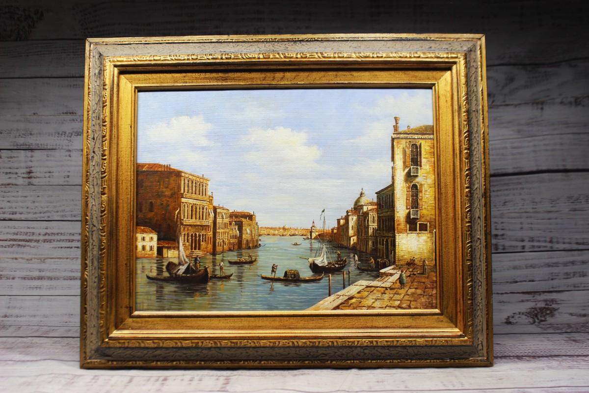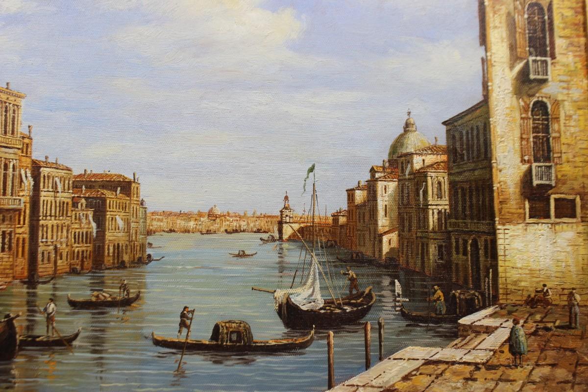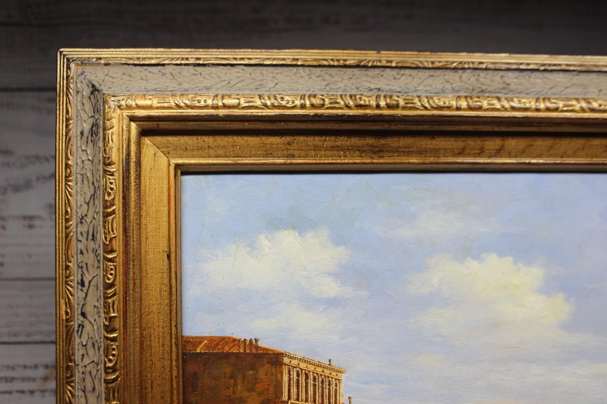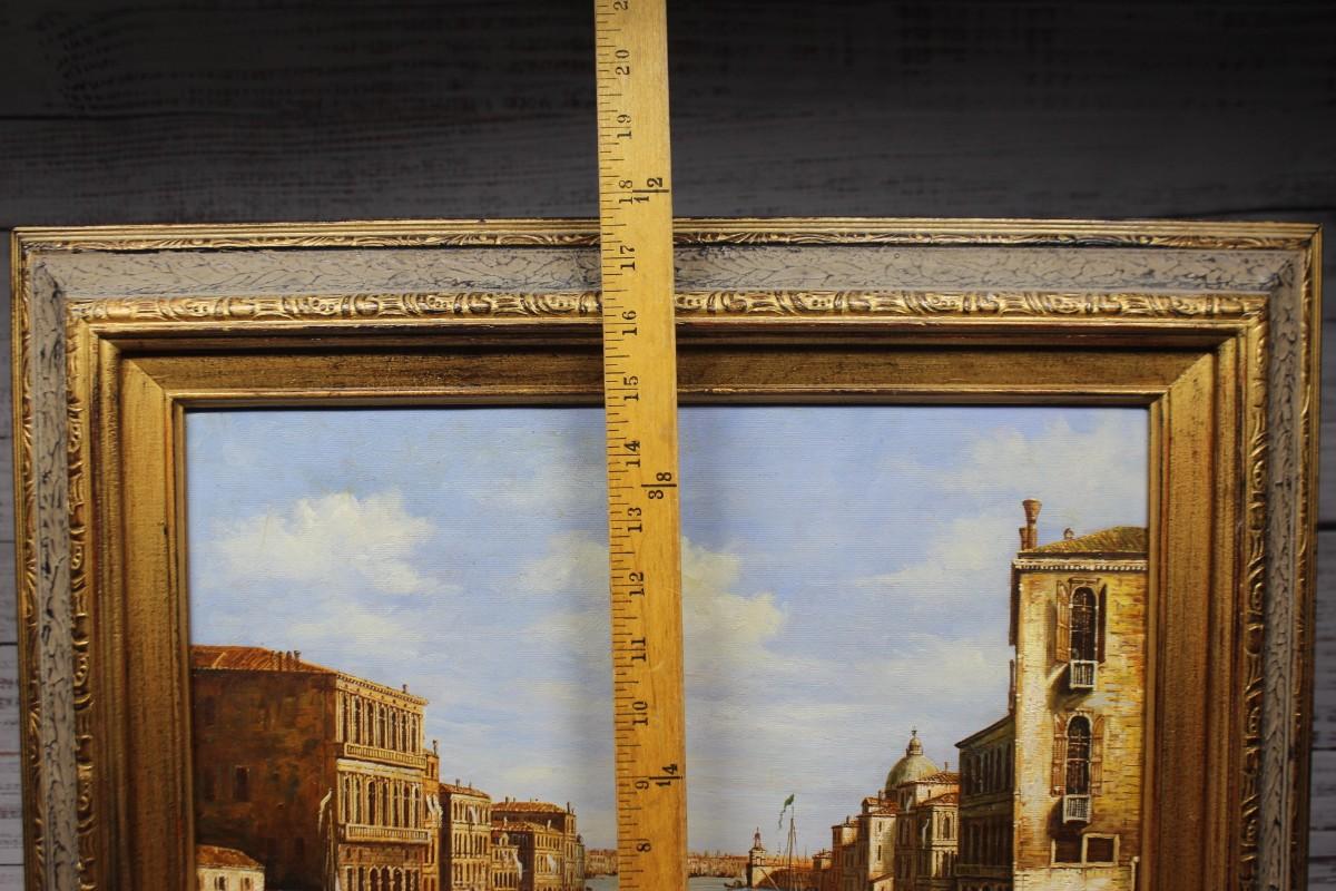 Vintage Framed Venetian Oil Painting on Canvas of the Grand Canal in Venice