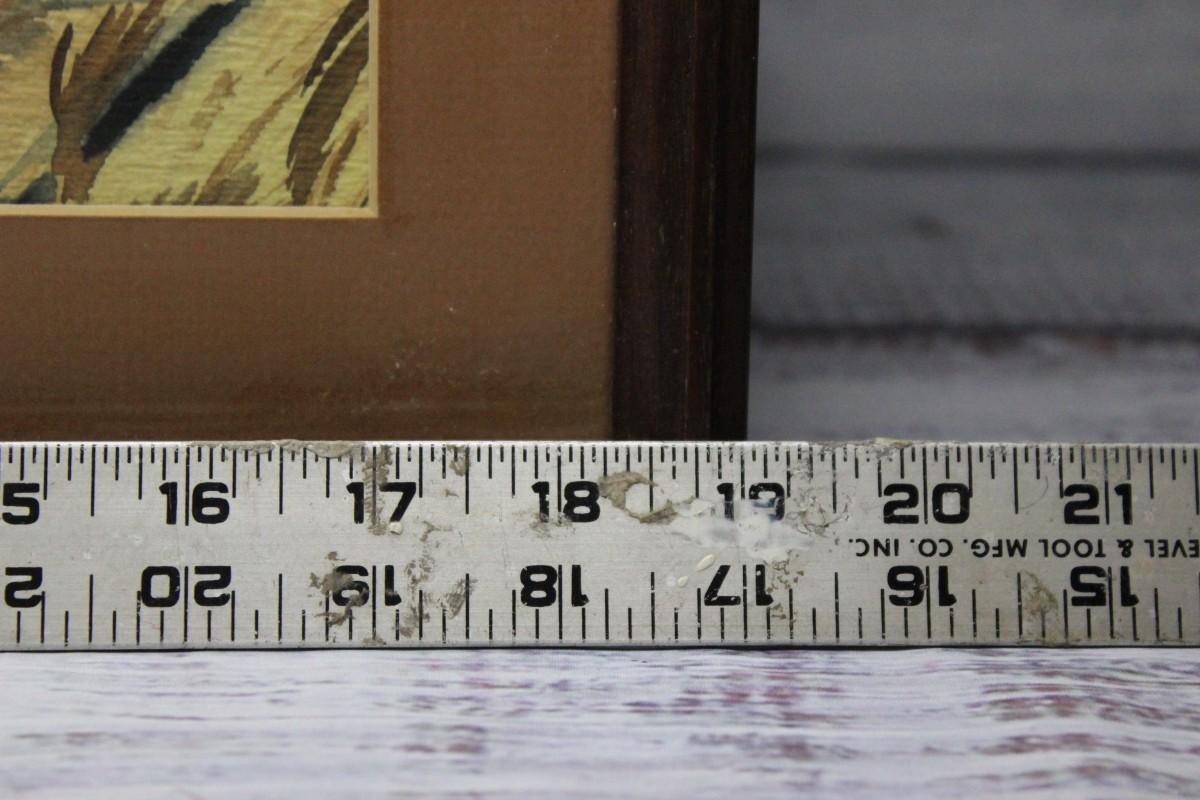 Vintage watercolor of a barn house, there is no damage to the frame or glass. Frame measures to about 19" x 15."