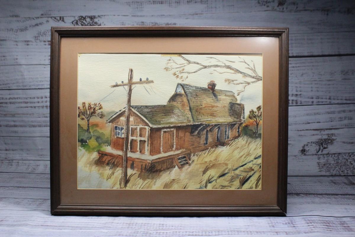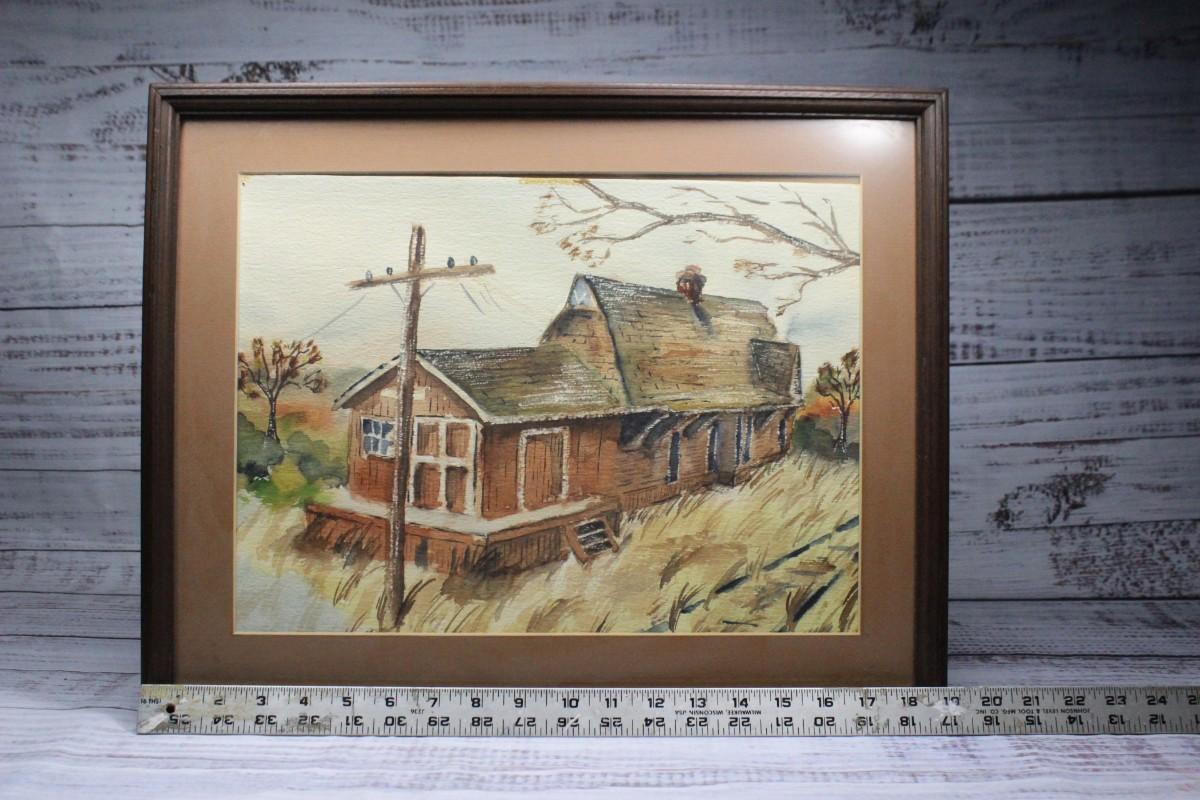 Vintage Framed Watercolor of a Barn House
