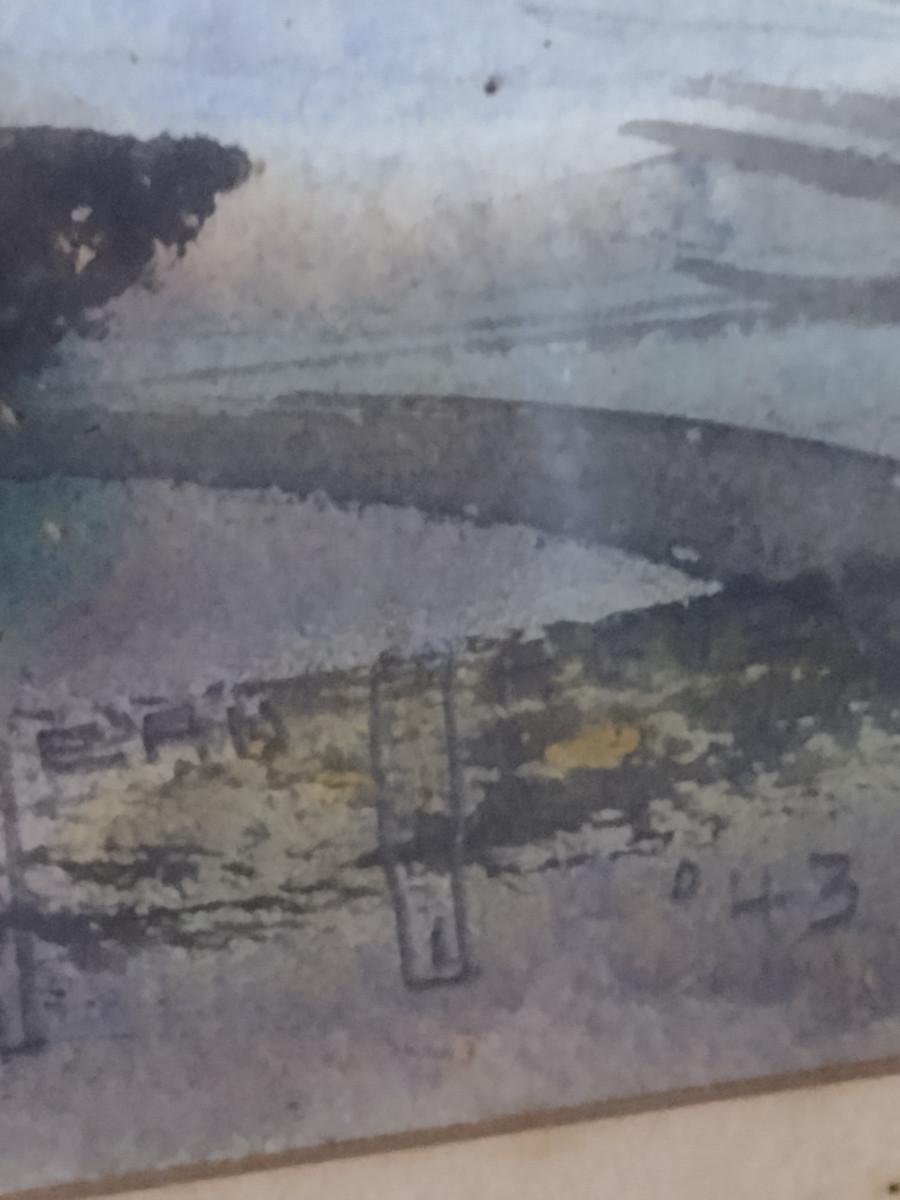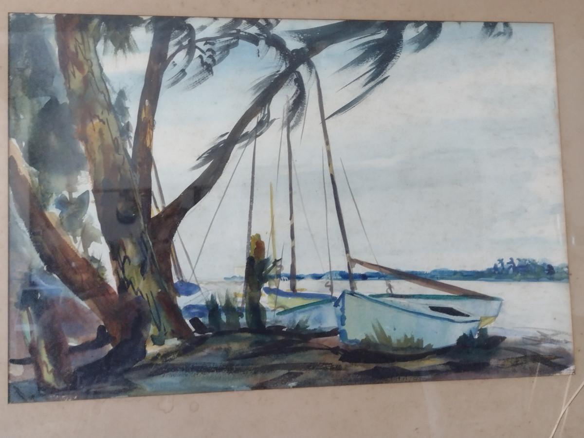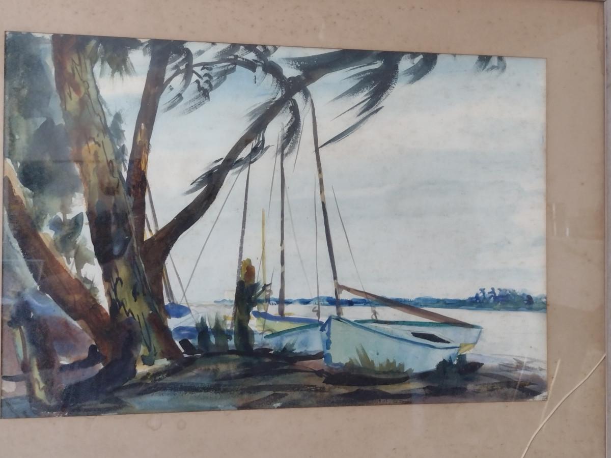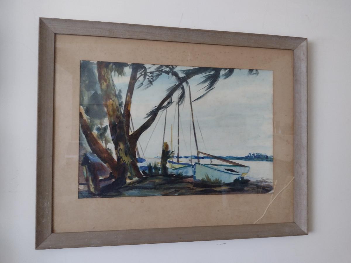 Vintage Framed Waterfront Design Art- Signed by Artist- Approx 24 1/4" x 32"