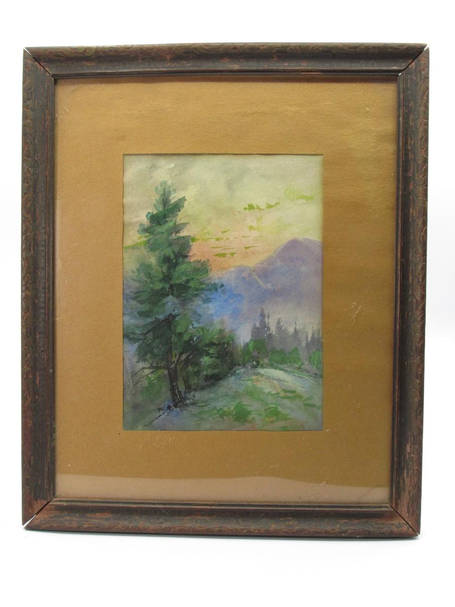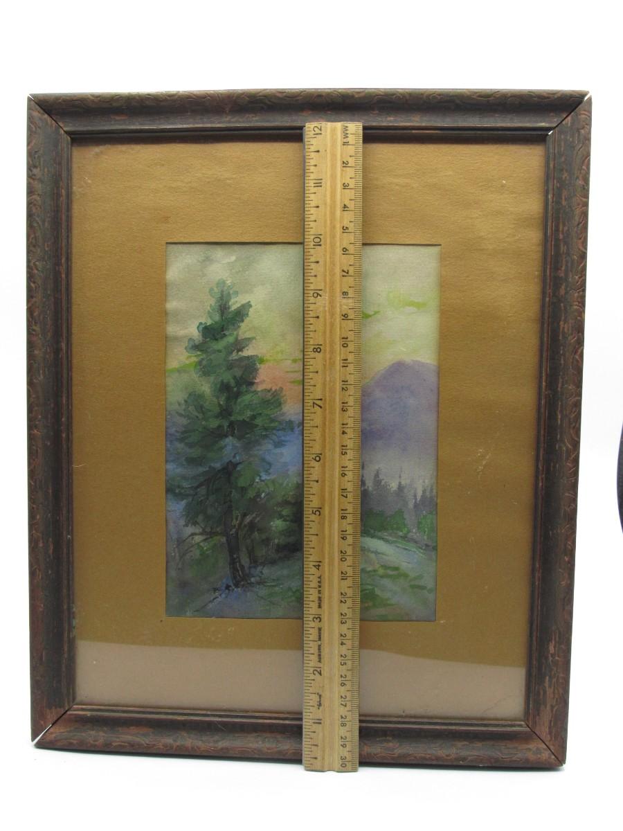 Vintage Framed Wild Wilderness Watercolor Landscape Art
