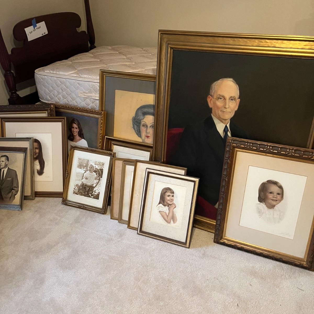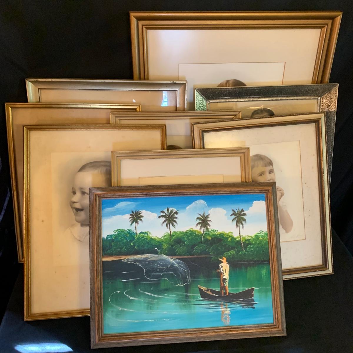 Variety of 14 vintage style photo frames. Largest frame measures approximately 35” x 43” and the smallest measures 12” x 15”. Nearly all frame backing is sealed. Please see photos for more details. Shipping available. Shipping can be costly. We suggest contacting our preferred local shipping provider, Postage Express, with dimensions and getting an estimate before bidding: (828) 670-5501 or postageexpress@yahoo.com.