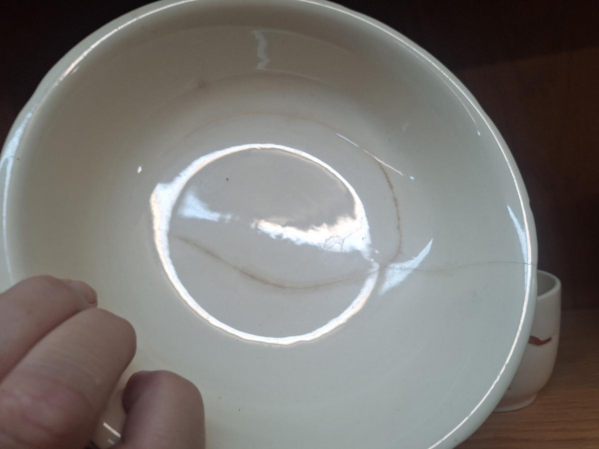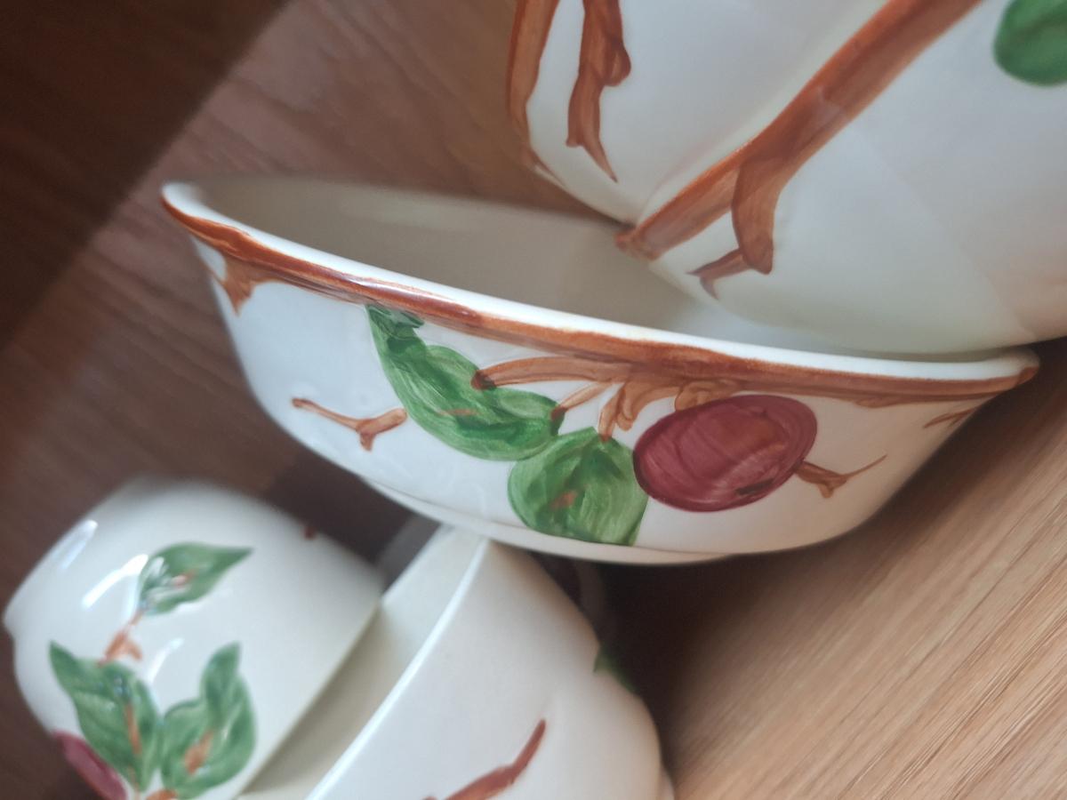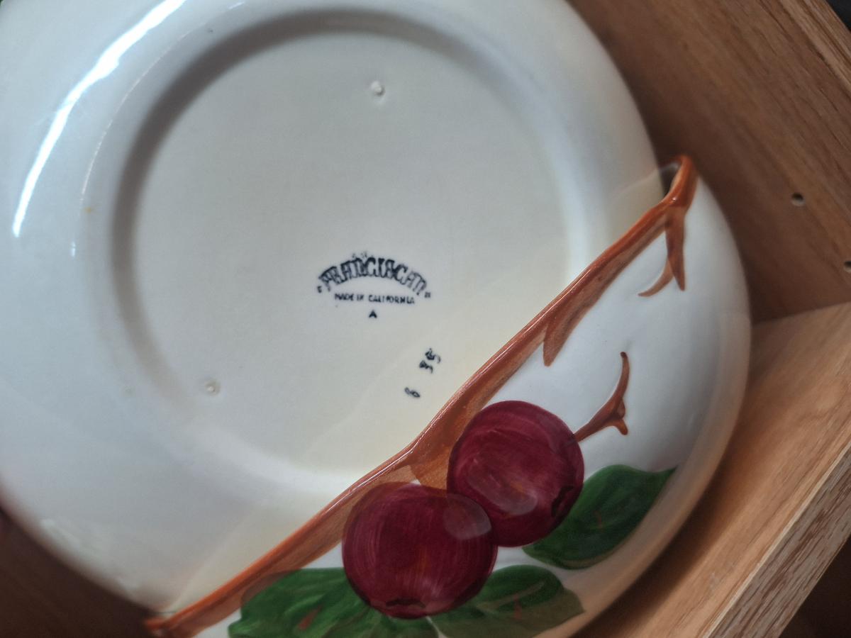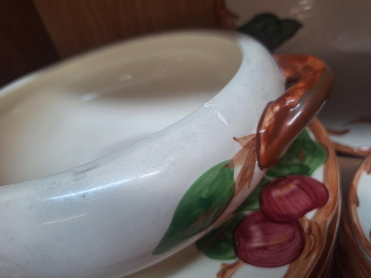 this includes all of the pieces you see on these two shelves. There are 8 coffee cups if you're not able to see them all to count. There is an additional bowl that's not in the first photo, it has a crack -see other photos for it.