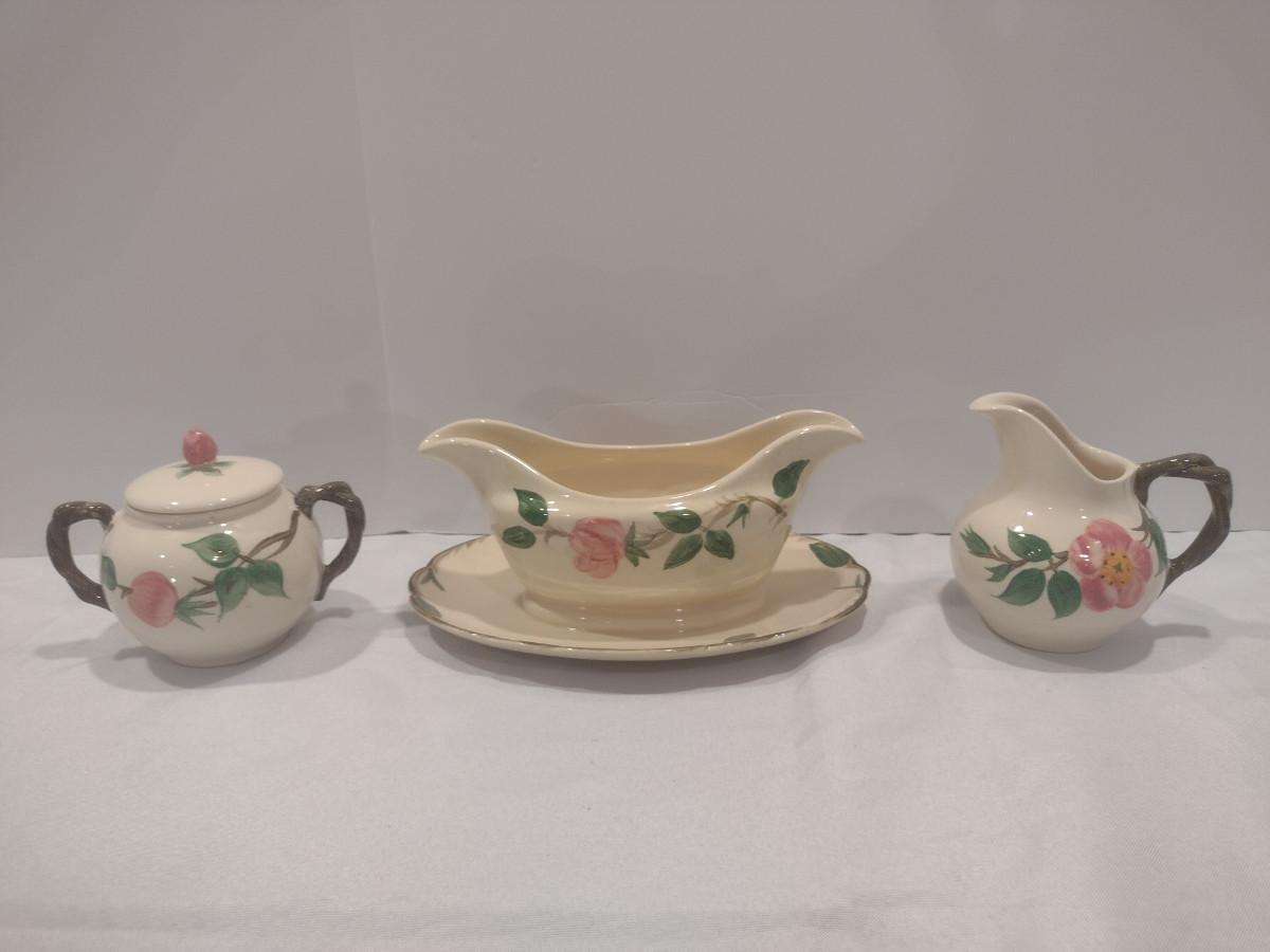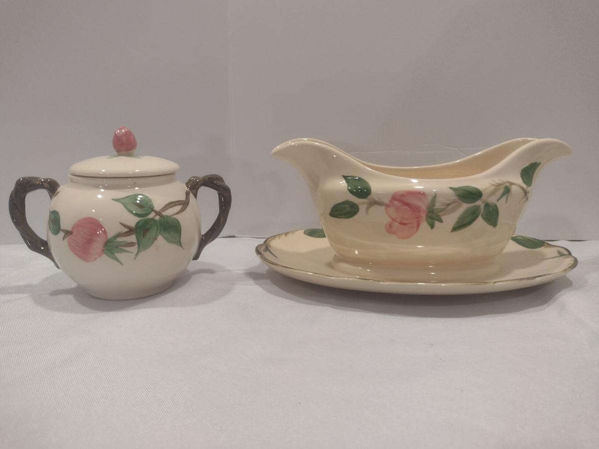 Vintage Franciscan Gravy Boat and Creamer and Covered Sugar Bowl. Items appear to be in good used condition.