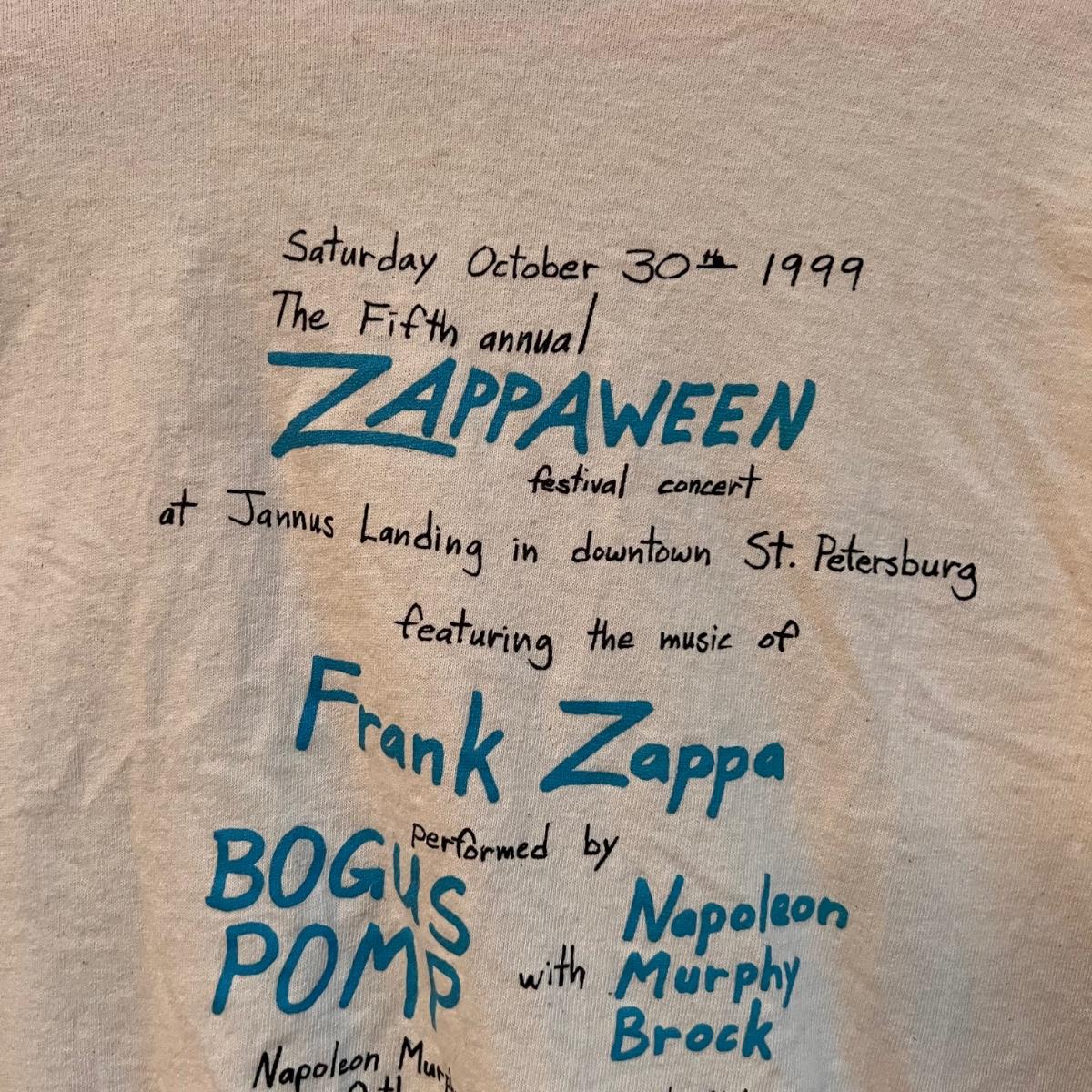 Saturday October 30, 1999 The Fifth annual ZAPPAWEEN festival concert tshirt. Concert tee. Vintage size XL. Some spots used condition