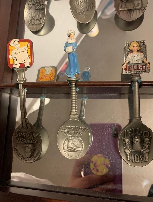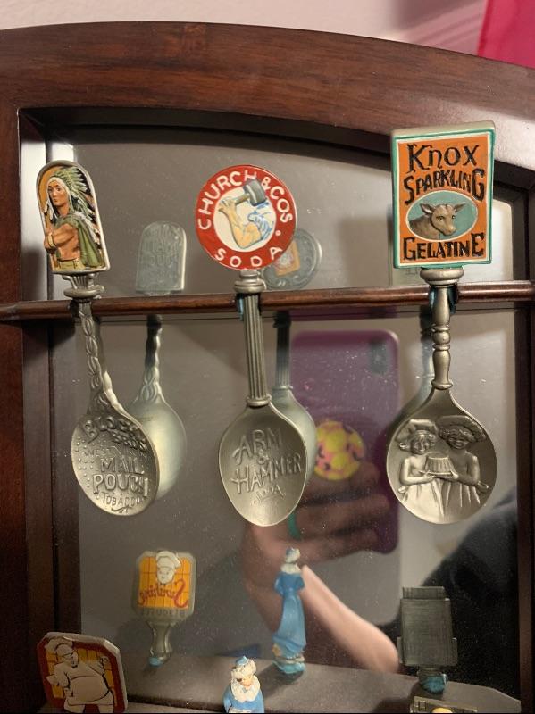 Vintage Franklin Mint Country Store Mirrored Shelf w/Pewter Advertising Spoons