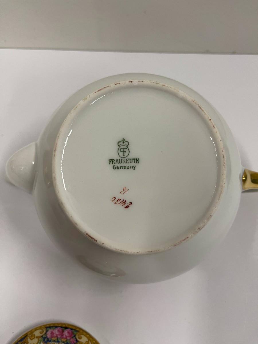 <p>Vintage Fraureuth porcelain china tea pot. Excellent condition. 9" wide x 5" high x 5" deep. </p> # 949