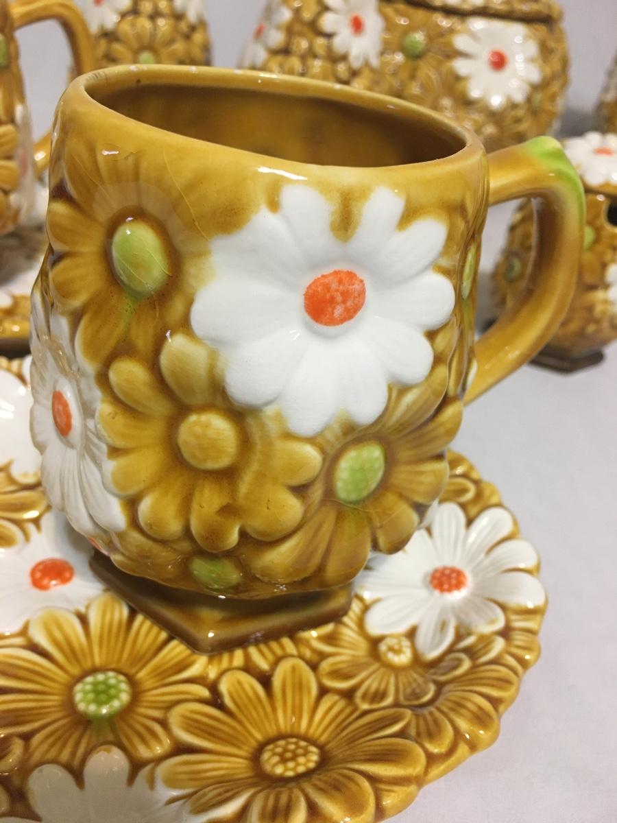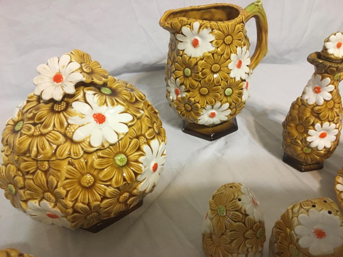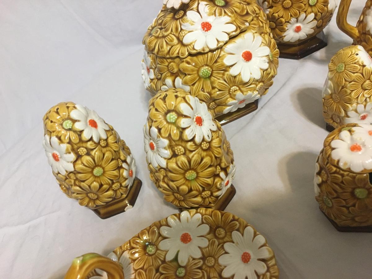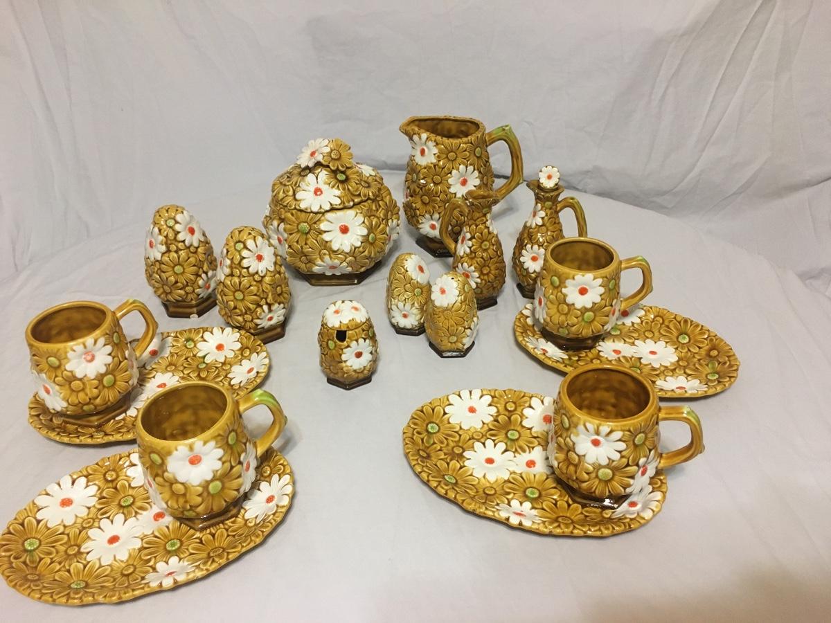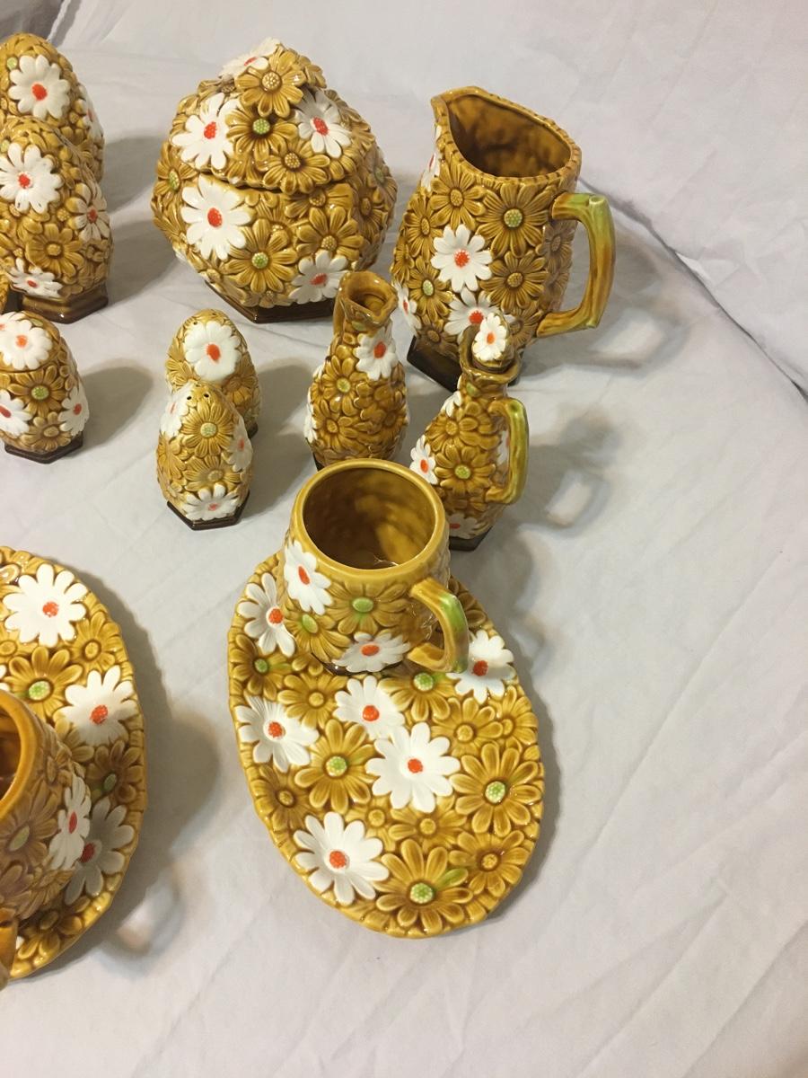 Vintage. Fred Roberts MCM Daisy 18 Pc Set Fred Roberts Raised Flowers