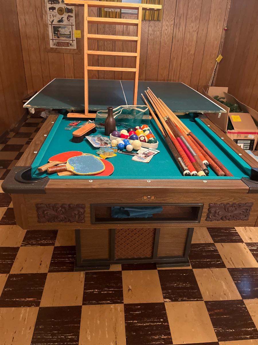 This vintage pool table is in excellent condition! Pool table is 46x84, ping pong top much larger.