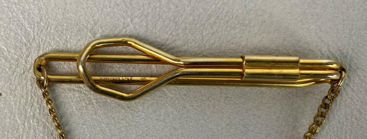 Here is a vintage gold-filled tie bar and chain for a Freemason...Maker stamped...2" wide...as shown..Some light age and use wear on this estate find.