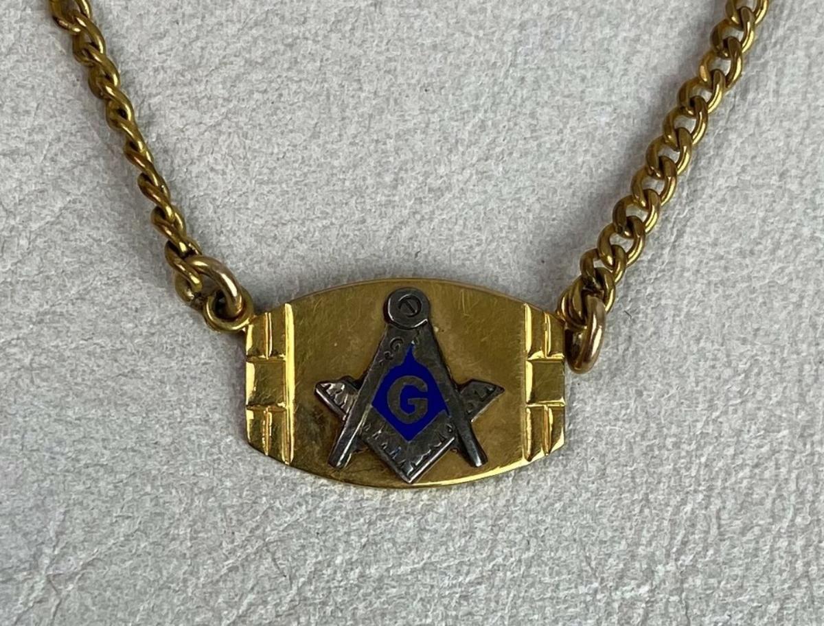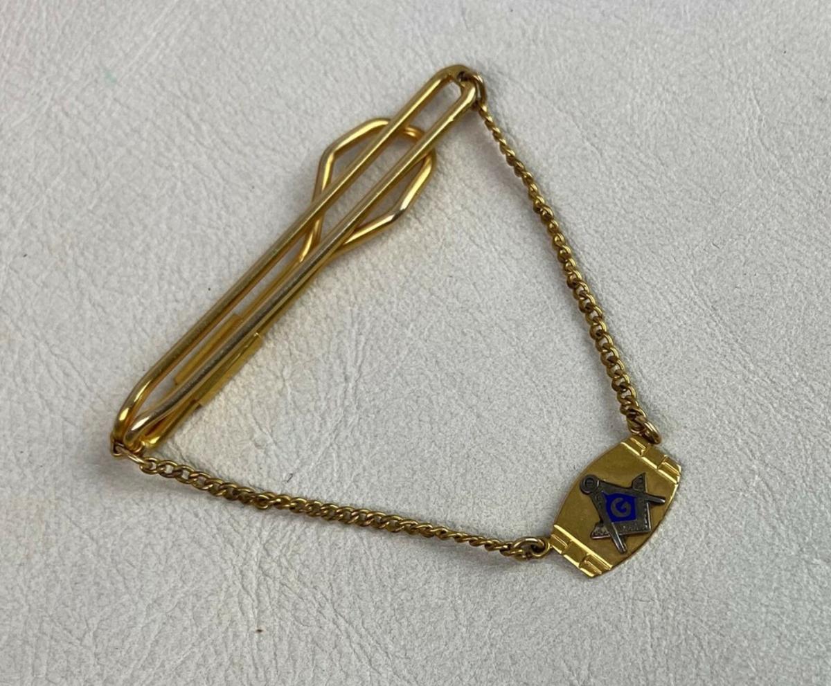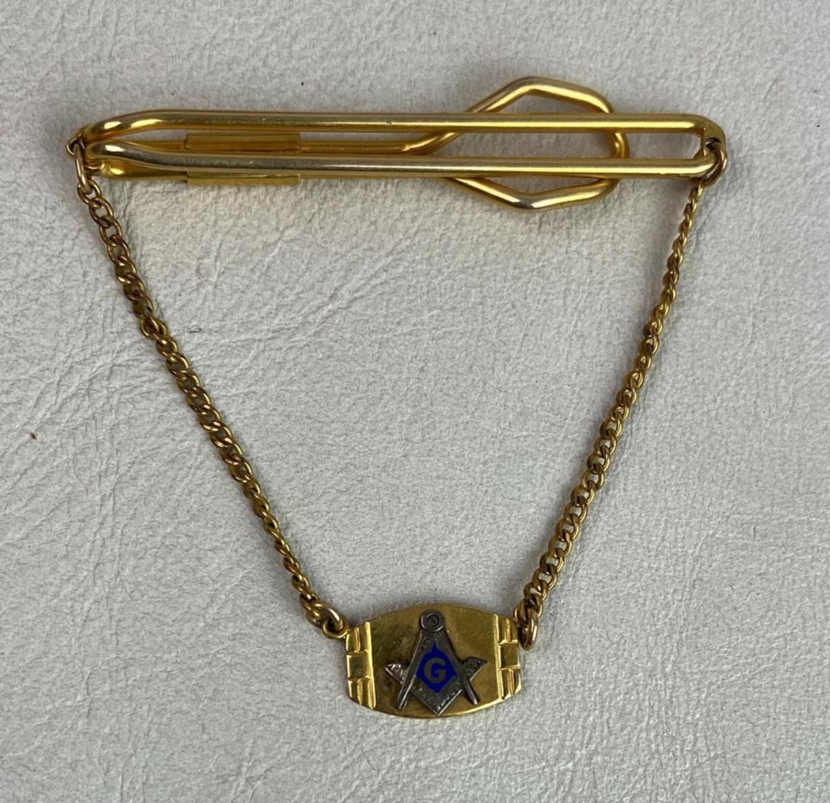 vintage FREEMASON MASONIC TIE BAR & CHAIN GF